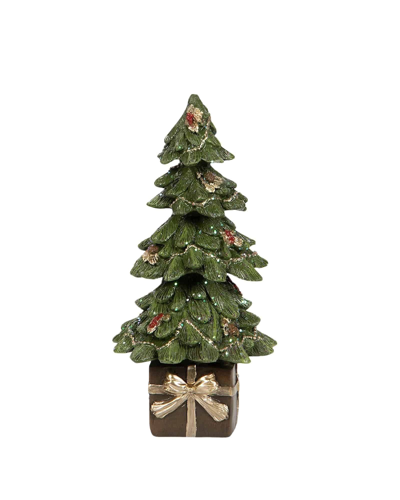 Julgranen har en klassisk form med tydliga detaljer som ger liv och karaktär. Det lilla paketet undertill förstärker känslan av julförväntan och blir en symbol för både tradition och omtanke. Tillsammans skapar de en hemtrevlig dekoration som passar i de flesta rum.