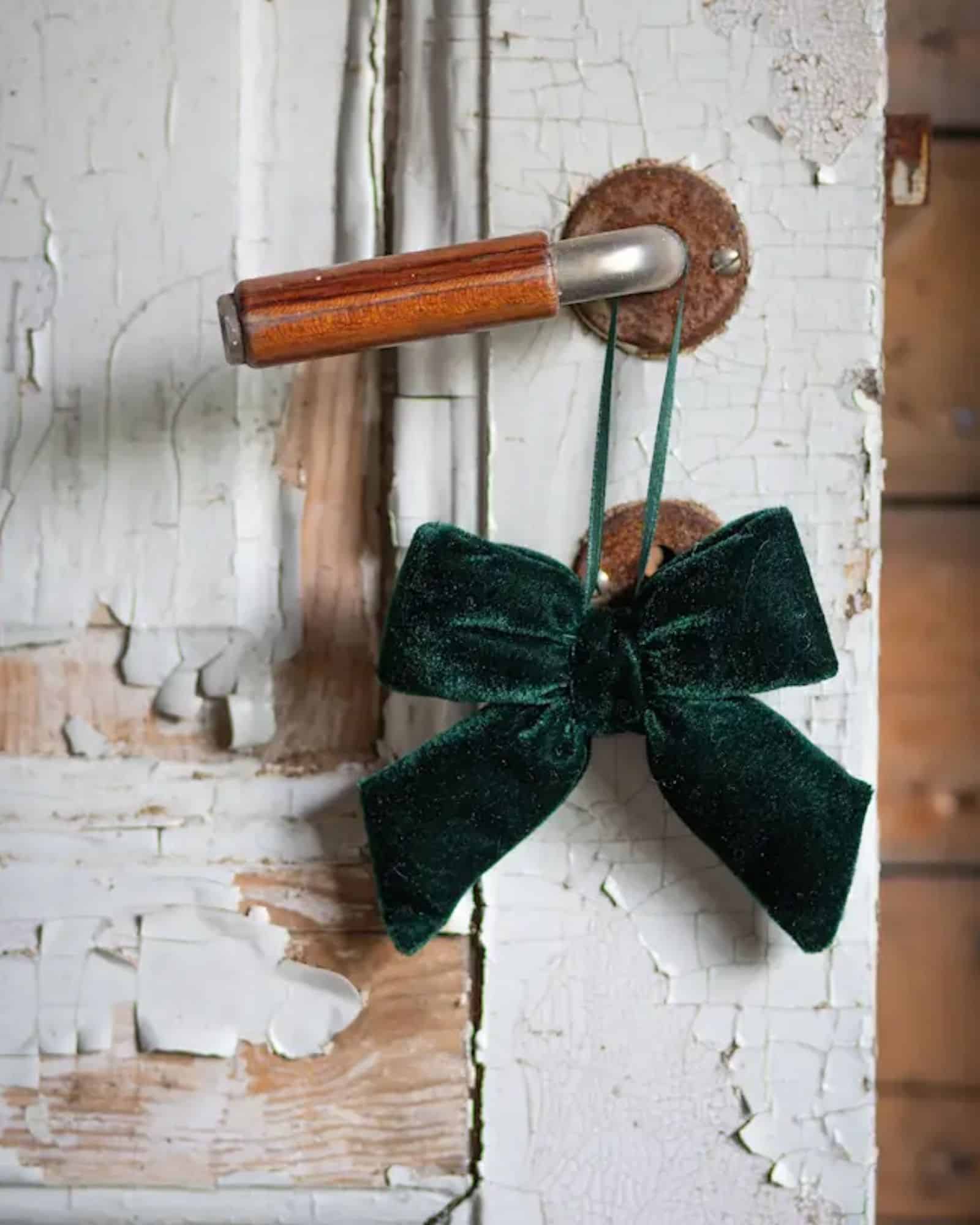Lägg till en mjuk och stilfull detalj i din dekoration med denna hängande rosett i grön sammet. Den klassiska formen och den djupa färgen ger ett elegant uttryck. Perfekt för julgranen, paketinslagningar, blomsterarrangemang eller dukningar. Den lilla storleken gör rosetten enkel att placera. Knyt den runt en servett, häng den i ett fönster eller använd som accent i adventsljusstaken. Den passar både som juldekoration och som inredningsdetalj året runt.