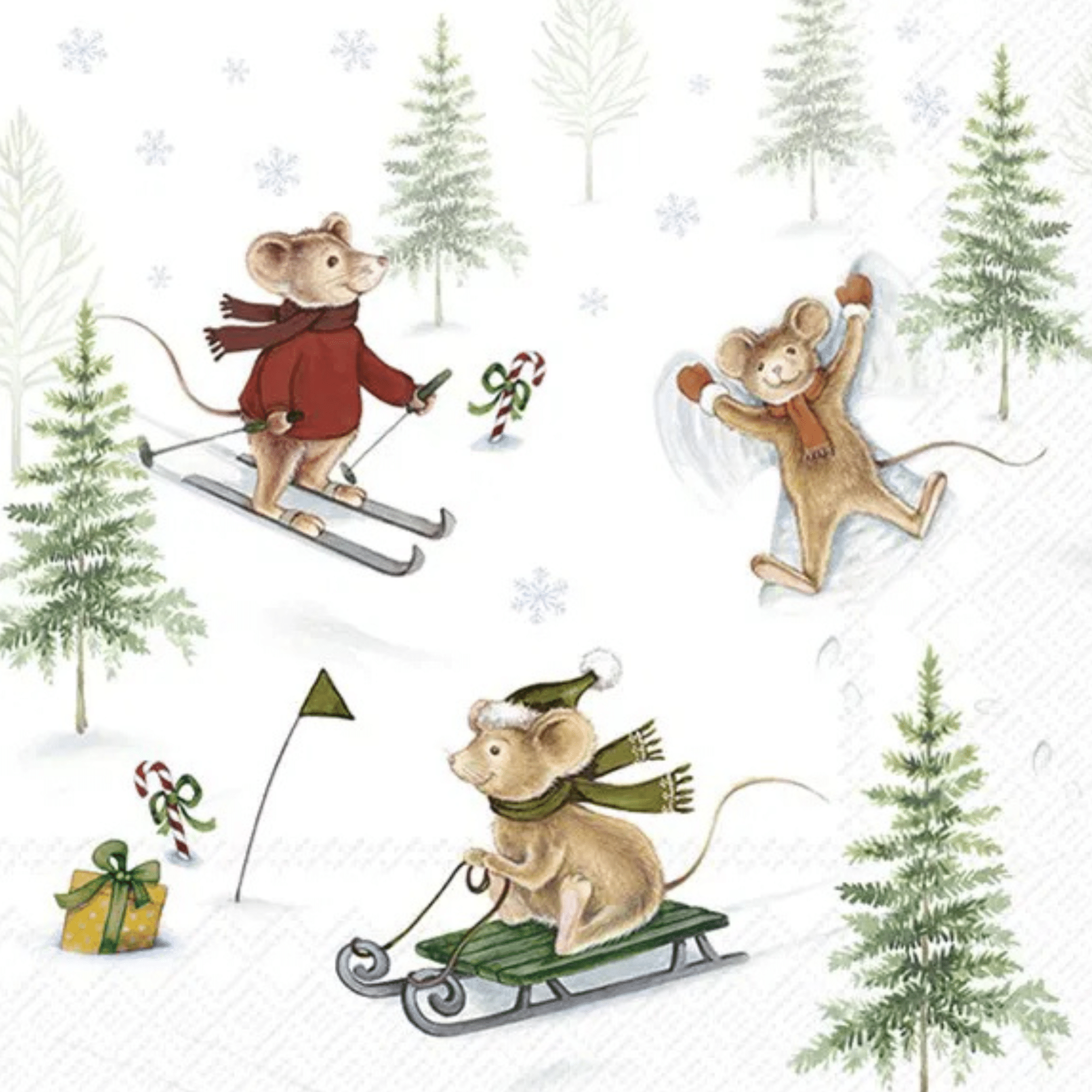 Låt vinterns lekfulla charm flytta in på ditt dukade bord med servetten Winter Snow Fun Lunch. Den här vackert illustrerade pappersservetten kombinerar vinterglädje med praktisk funktion, och den passar därför perfekt för allt från mysiga luncher med familjen till mer festliga tillfällen under den kalla årstiden.