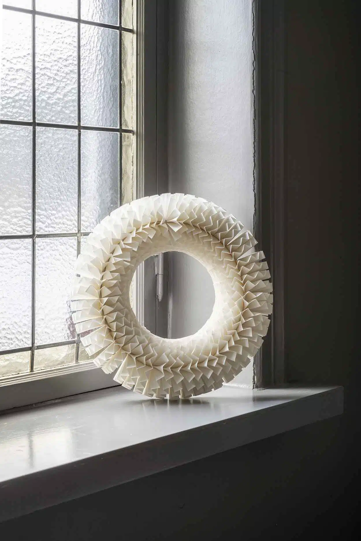 Stockholm krans från Watt & Veke med en minimalistisk design i papper med en rund form perfekt för att hänga på dörren, en vägg i hallen eller ovanför sängen.