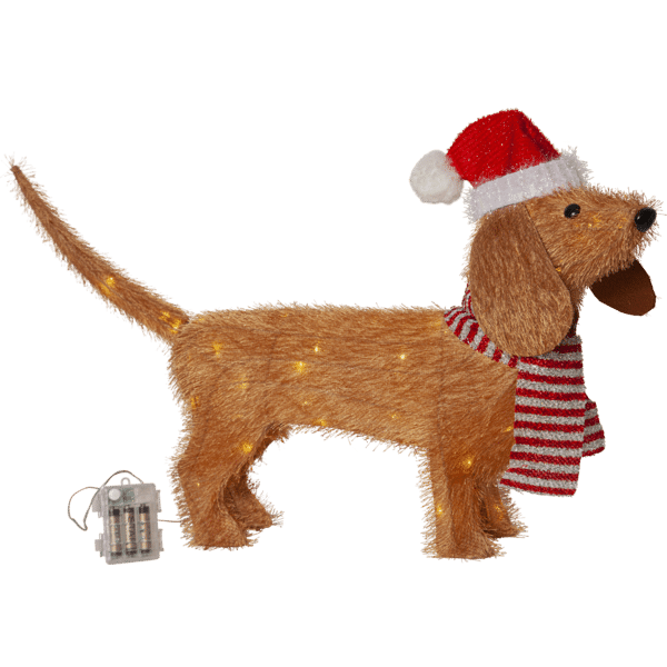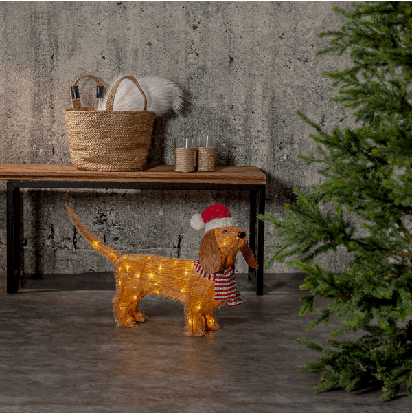 Med transparent anslutningskabel och låg effekt (0,5 W) är Hund Tecidy både säker och energieffektiv. Den blir ett charmigt inslag i juldekorationen, på altanen, i hallen eller i trädgården.