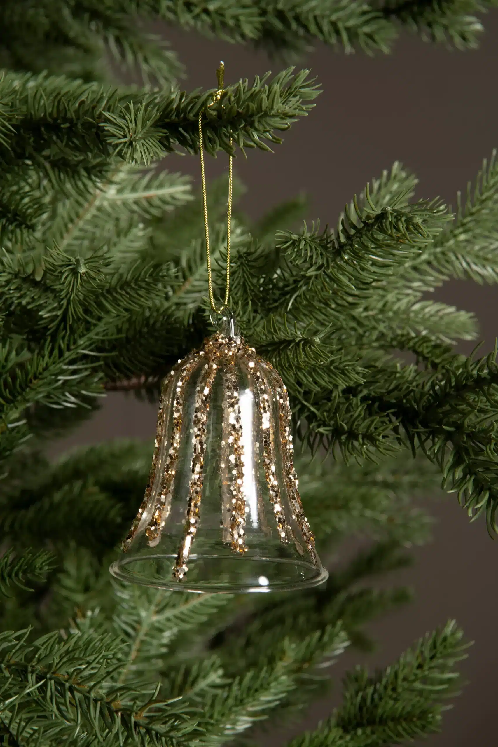 Ge din julgran ett elegant lyft med Glasklocka Belle – en transparent hängdekoration med gnistrande glitterdetaljer. Den klara glaskroppen fångar ljuset på ett mjukt sätt, samtidigt som glittret tillför ett subtilt skimmer. Tillsammans skapar de en dekoration som känns både klassisk och lyxig.