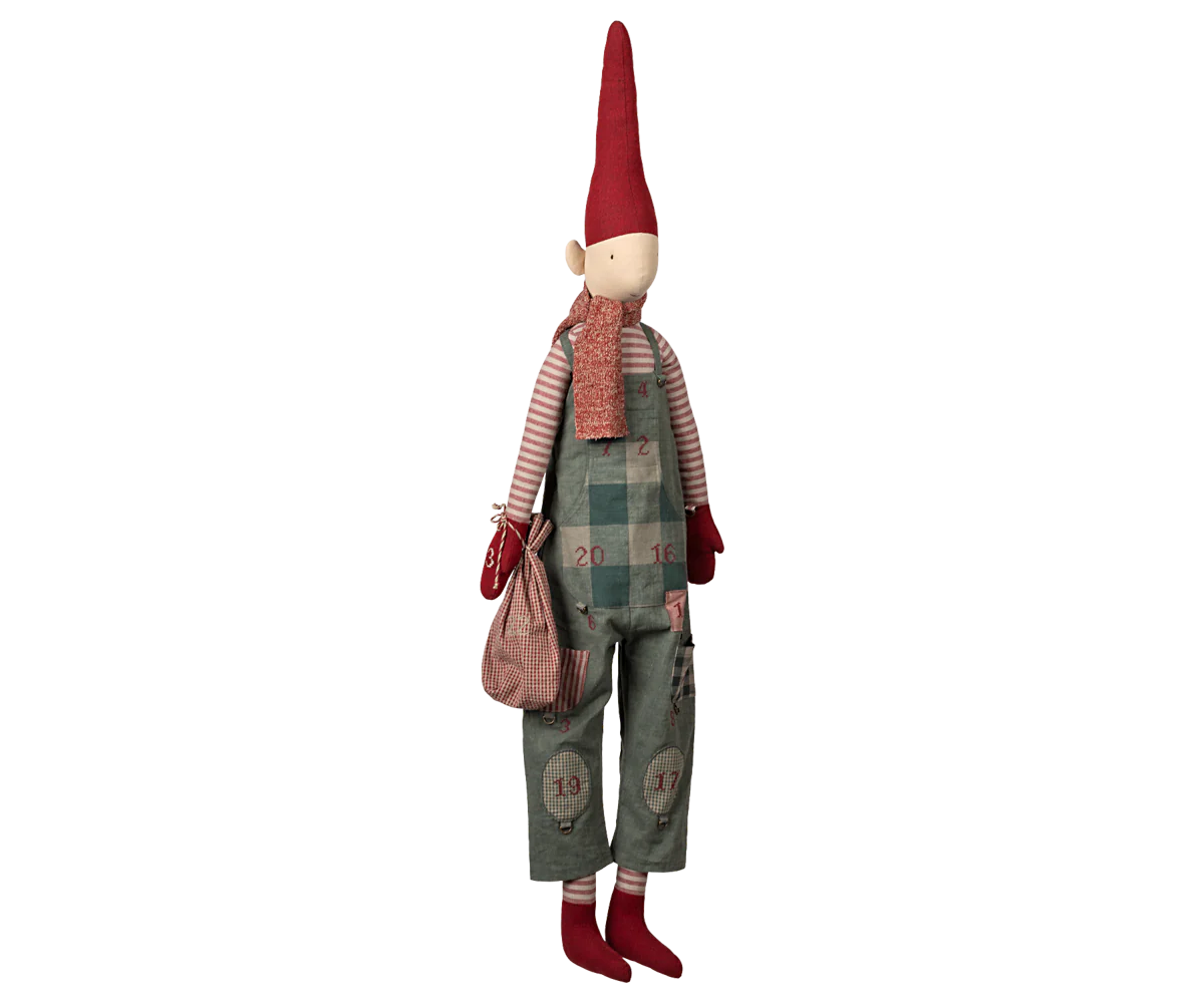 December är full av familjetraditioner och denna kalendernisse kan bli din nästa. Kalendertjejen har 24 ringar/fickor för att fästa små godsaker – en för varje dag innan jul. Pixyn har en rem i nacken, så den är lätt att hänga överallt.