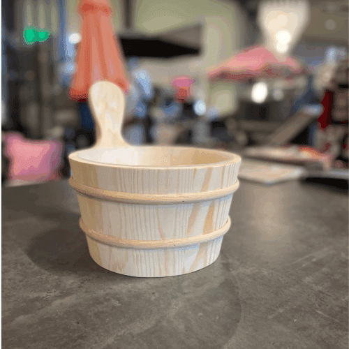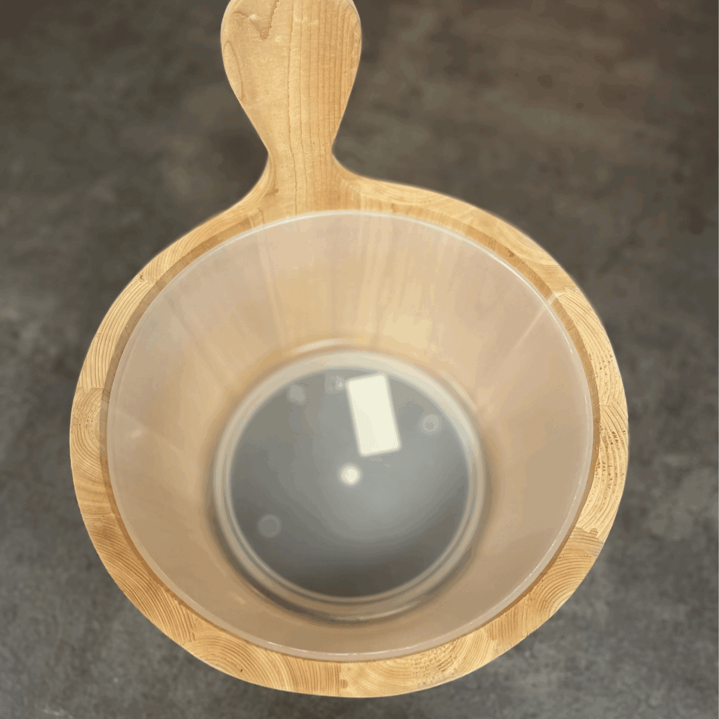 Med en total höjd på 260 mm och en diameter på 260 mm både i toppen och botten är den både stabil och lätt att hantera – ett perfekt tillbehör till basturitualen, oavsett om det är hemma eller i en spa-miljö.