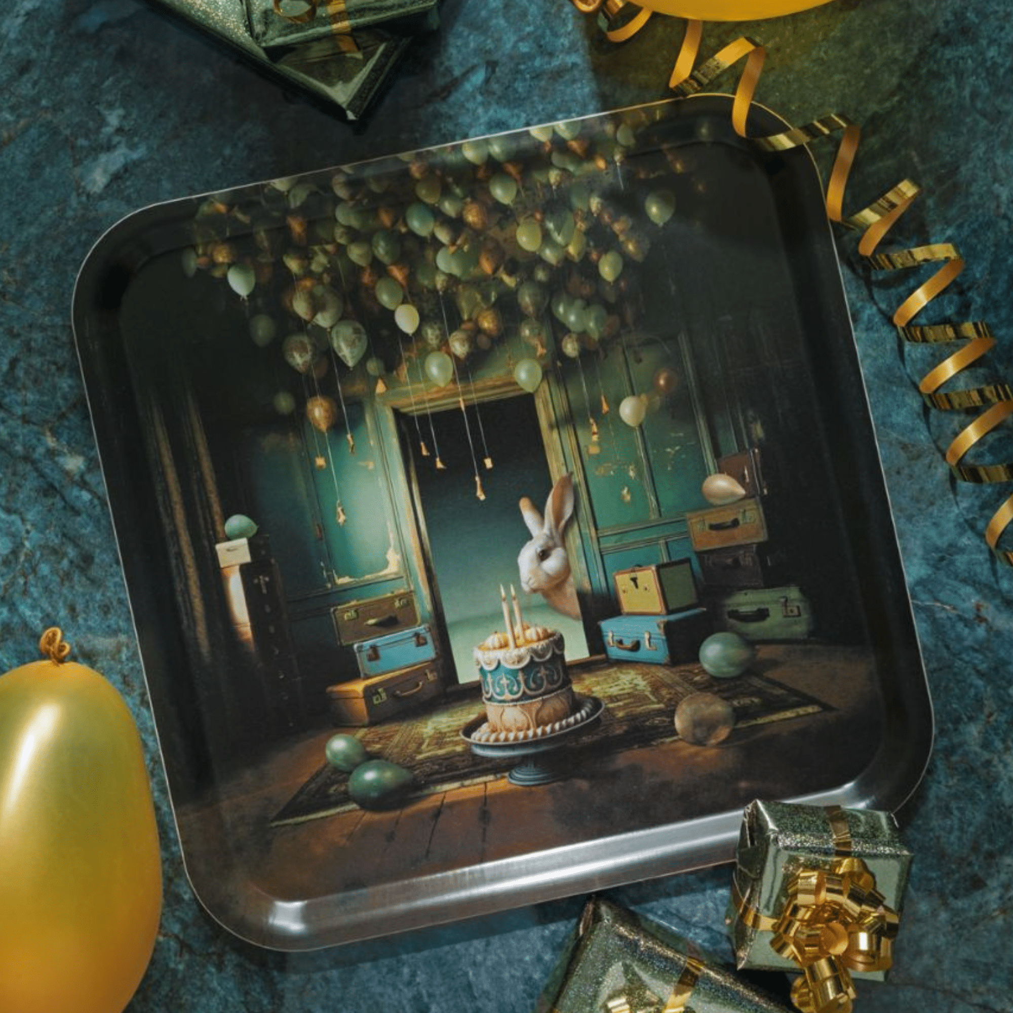 Bricka ”It’s My Party” av Maggie Taylor är ett unikt konstverk som förenar funktion och estetik. Maggie Taylor, den internationellt erkända bildkonstnären, har skapat en färgstark och fantasifull design som lyfter både dukningar och inredning. Brickans motiv ger varje rum en känsla av magisk surrealism.