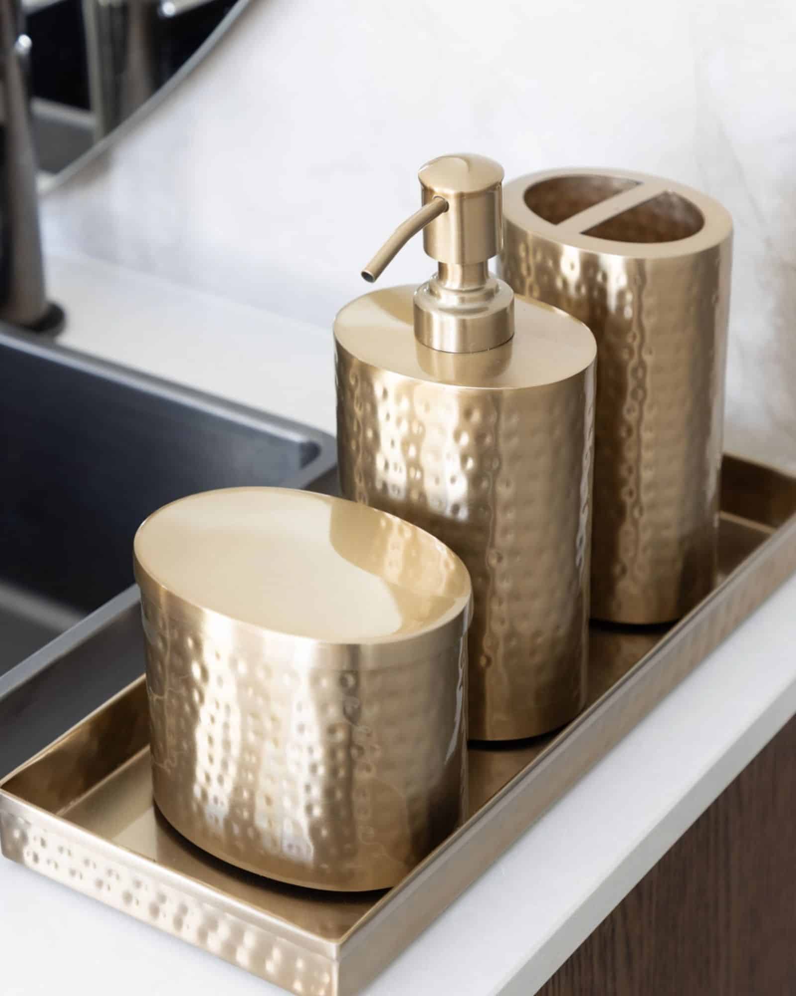 Halvor Bakke Lutz bricka i bronsfärgad metall. Elegant, funktionell och perfekt för badrum eller inredning.