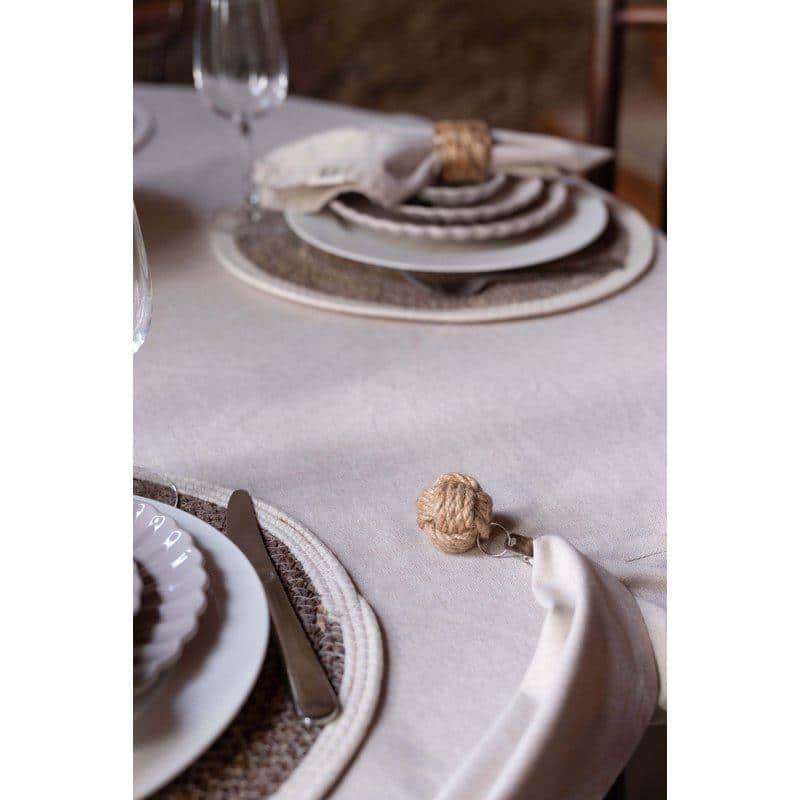 Denna duk med linnelook, är tillverkad av återvunnen bomull och återvunnen polyester. Den passar perfekt för både vardagliga och festliga tillfällen och är ett utmärkt val för de som värdesätter både stil och miljömedvetenhet.