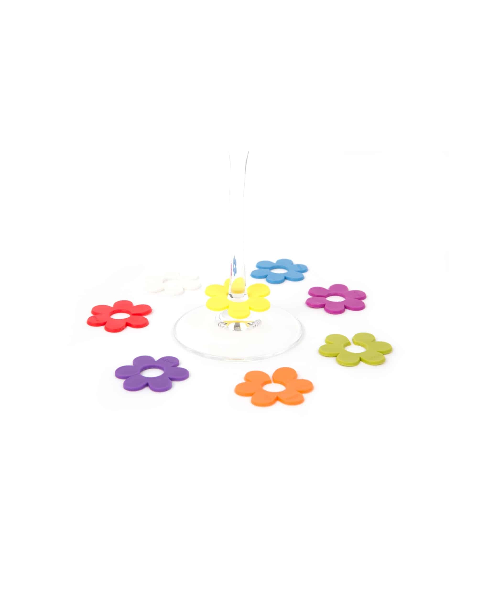 Glasmarkörer Daisy – Silikon 8-pack är tillverkade i flexibelt silikon, vilket gör dem hållbara och enkla att använda om och om igen. Materialet gör att de sitter stadigt på glaset samtidigt som de är lätta att ta av och flytta vid behov. Därför passar de lika bra till vinglas som till andra typer av glas.