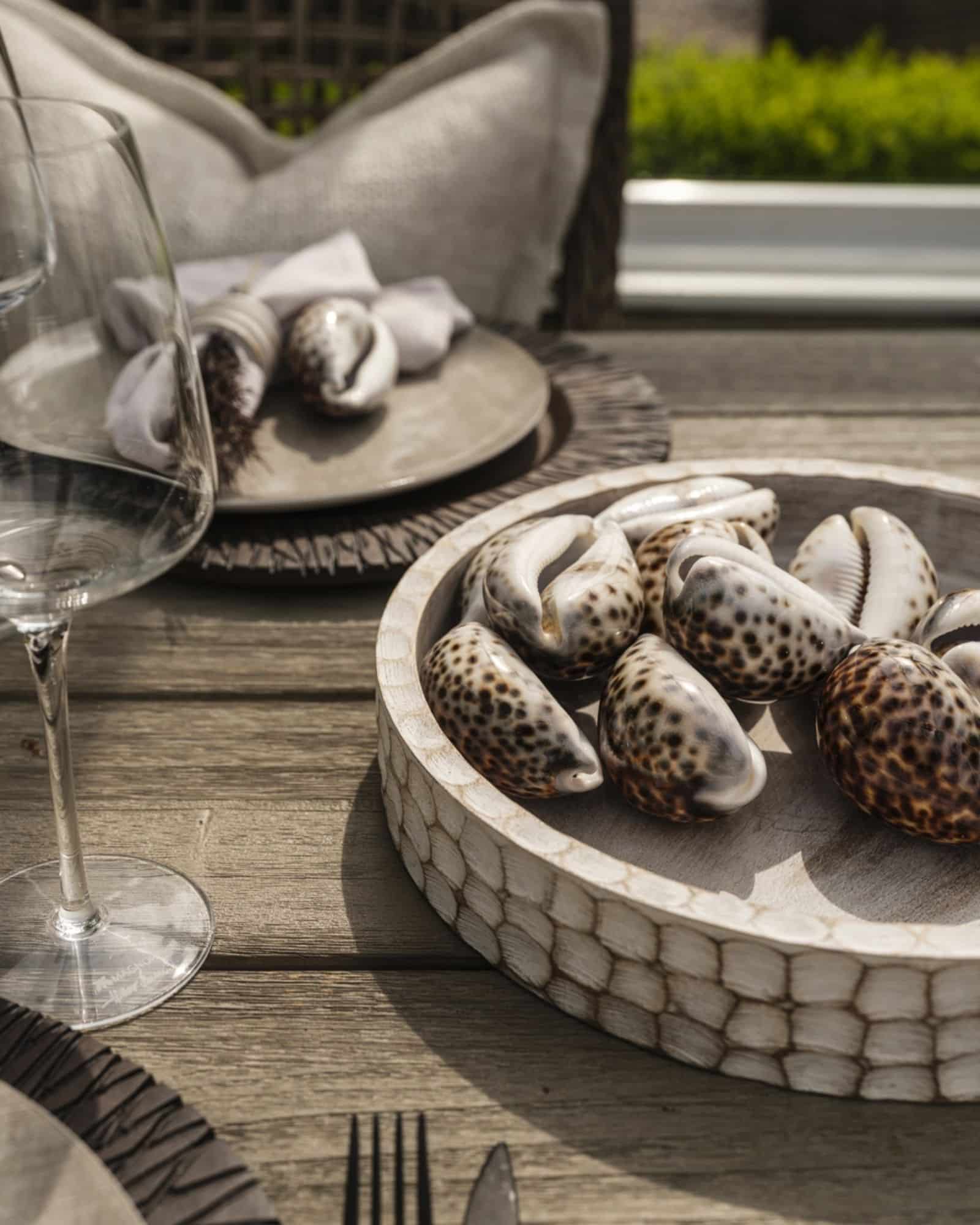 Mangoträ har en vacker ådring och ett utseende som påminner om teak. Varje bricka får därför sitt eget unika uttryck. Trä är ett levande material som kan påverkas av inomhusklimatet. Små sprickor kan uppstå, särskilt i torra miljöer, och bidrar till produktens naturliga karaktär.