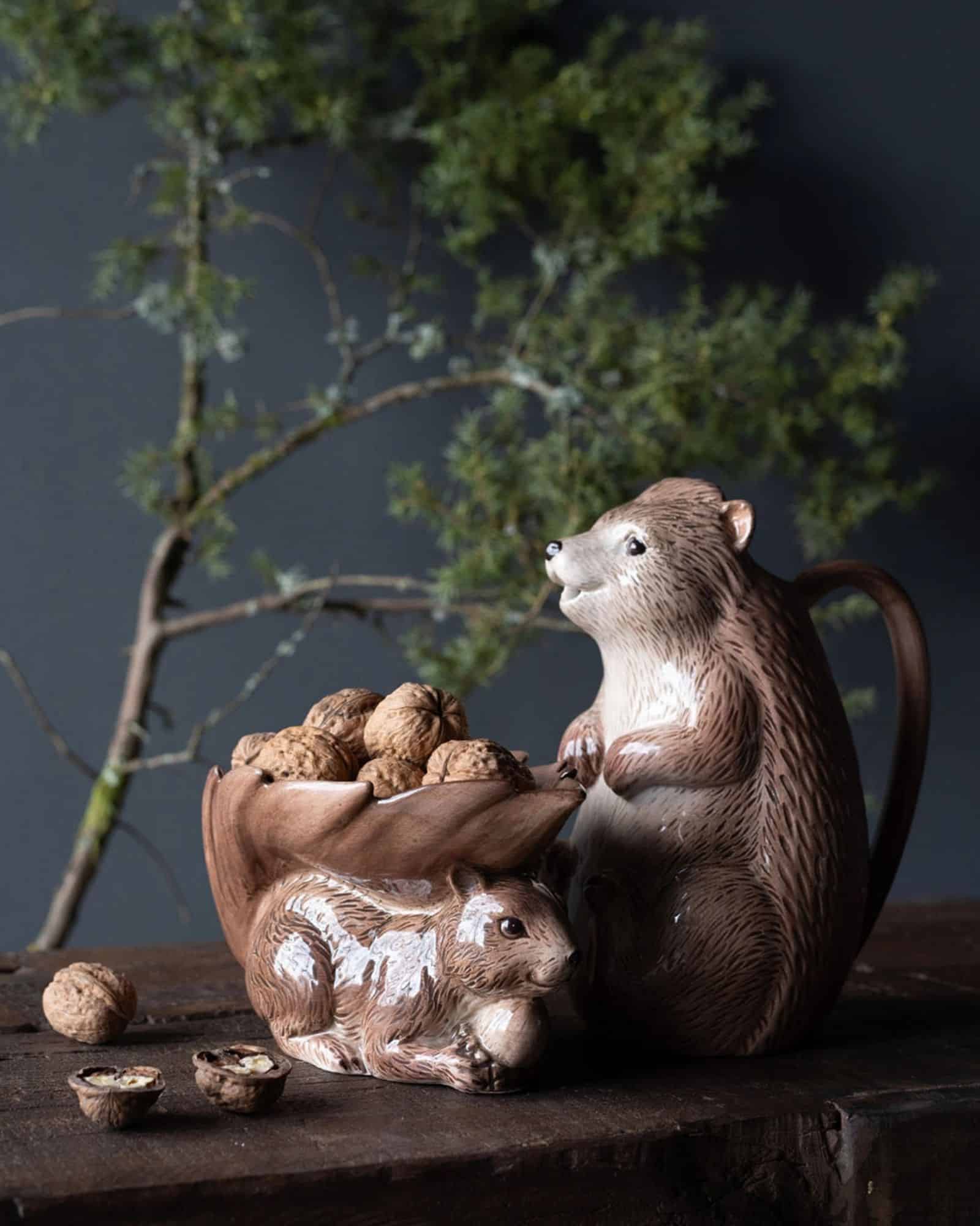 Igelkott‑kannan är en charmerande kombination av konstnärlig form och praktisk funktion. Tillverkad i dolomit med vacker brunmelerad yta, erbjuder den ett varmt och inbjudande uttryck som lyfter vilken dukning som helst. Med måtten 12 × 16 × 23 cm är den lagom stor för vatten, juice, mjölk eller andra drycker, utan att ta över bordet. Den robusta dolomiten gör kannan slitstark och samtidigt dekorativ – perfekt både för vardagligt bruk och för festligare tillfällen. Formen är inspirerad av naturens mjuka former och igelkottens lekfulla uttryck, vilket ger ett personligt och originellt intryck. Placerad på bordet, serveringsbricka eller hylla blir den en stilfull detalj som kombinerar nytta och estetik. Rengörs enkelt med mjuk trasa och ljummet vatten, undvik starka rengöringsmedel för att bevara den brunmelerade lystern. Igelkott‑kannan passar fint med porslin i jordfärger, trä och textiler i naturmaterial för ett harmoniskt intryck. En perfekt gåva eller ett fint tillskott till ditt hem – funktion och charm i en dekorativ kanna.