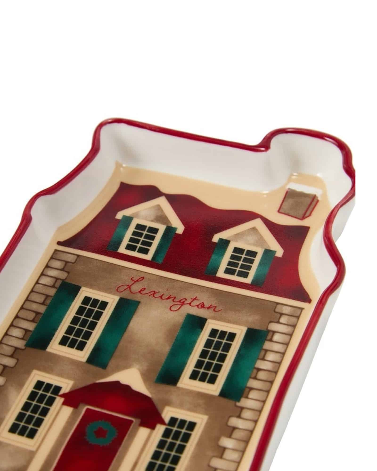 Lexington hus fat i stengods. Ge din dukning en säsongsbetonad uppgradering med Lexington hus fat i stengods från Holiday 25-kollektionen. Fatet visar upp en exklusiv vinterhusdesign med charmiga, handmålade detaljer längs kanten. Den blanka glasyrfinishen lyfter fram de livfulla färgerna och skapar en sofistikerad känsla.