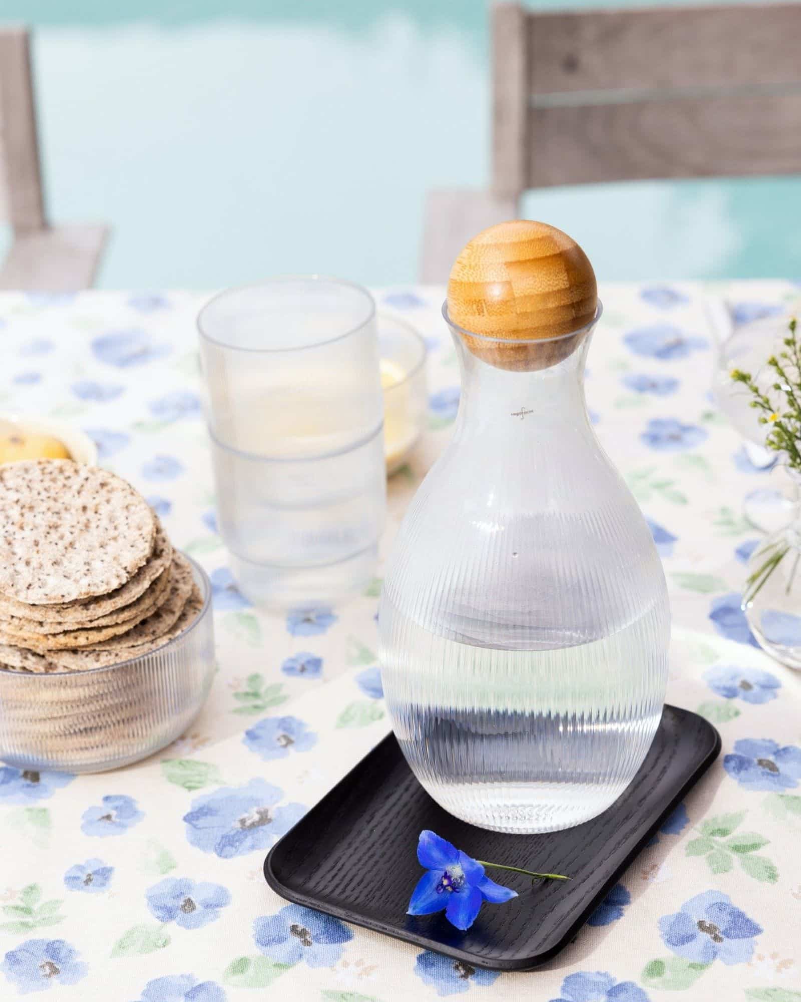 Sagaform Eden vaxad duk är en stilfull och praktisk detalj som passar lika bra inomhus som utomhus. Dess målade blomstermönster i mjuka pasteller med blå, gröna och beige toner skapar en harmonisk och lugn känsla vid varje dukning. Tack vare den vaxade ytan är duken vattenavvisande och enkel att torka av, vilket gör den perfekt för både vardagsmåltider och sommarens uteluncher.