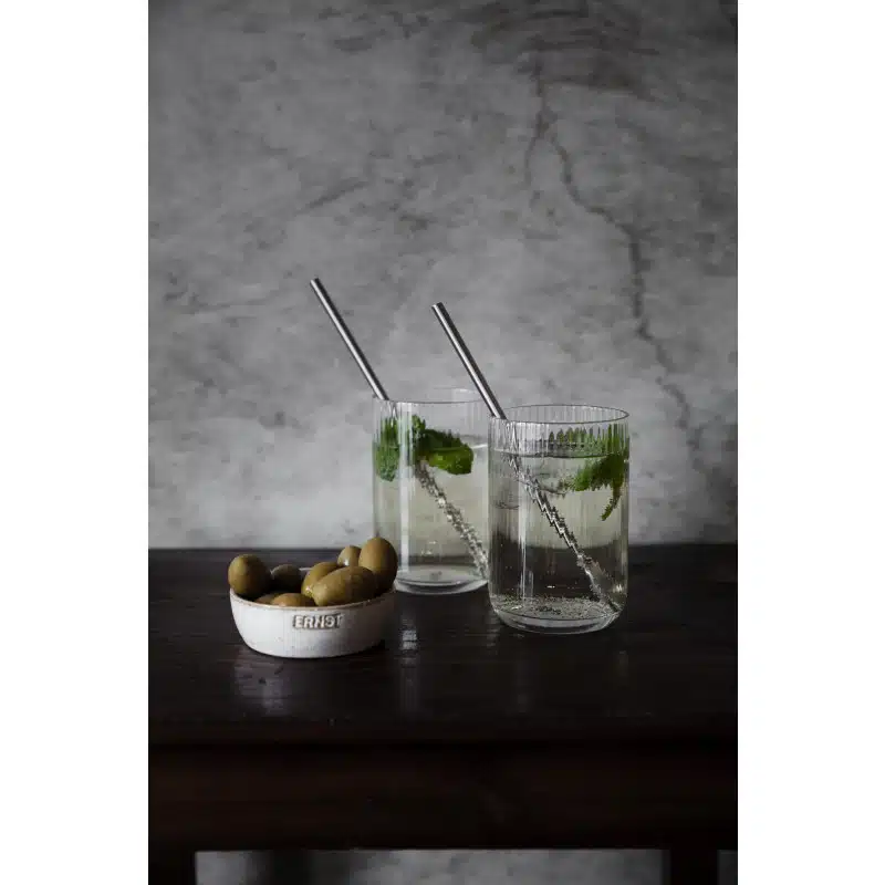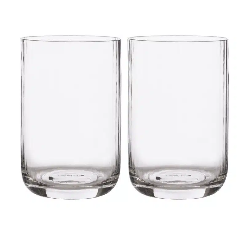 ERNST räfflade dricksglas ingår i en serie med flera olika glas för olika tillfällen. Finns även en kanna i samma serie. Eleganta att duka med och goda att dricka ur.
