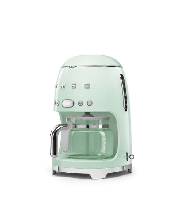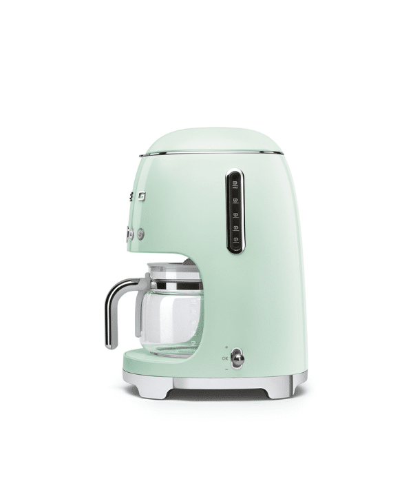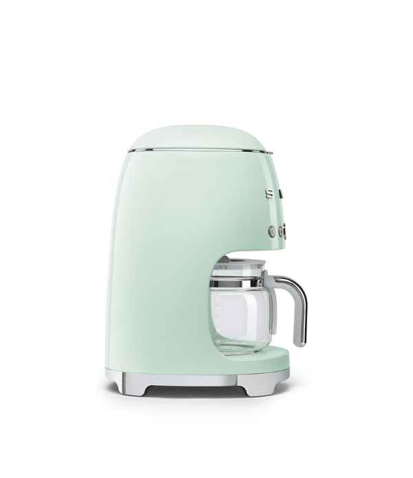 Smeg kaffebryggare pastellgrön 50’s Style är ett perfekt val för dig som vill kombinera retrodesign med modern funktion. Den högblanka ytan och de mjuka formerna ger en tydlig 50-talskänsla. Därför blir kaffebryggaren snabbt en stilfull detalj i köket. Samtidigt levererar den kaffe av hög kvalitet varje dag.