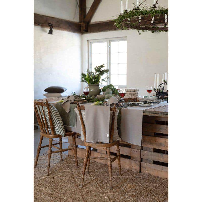 En löpare i återvunnen bomull och återvunnen polyester med en linnelook, som är en miljövänlig och stilren produkt som kombinerar hållbarhet med en elegant design. Den passar in i olika inredningsstilar, allt från det moderna till det lantliga och skapar en harmonisk atmosfär i rummet.