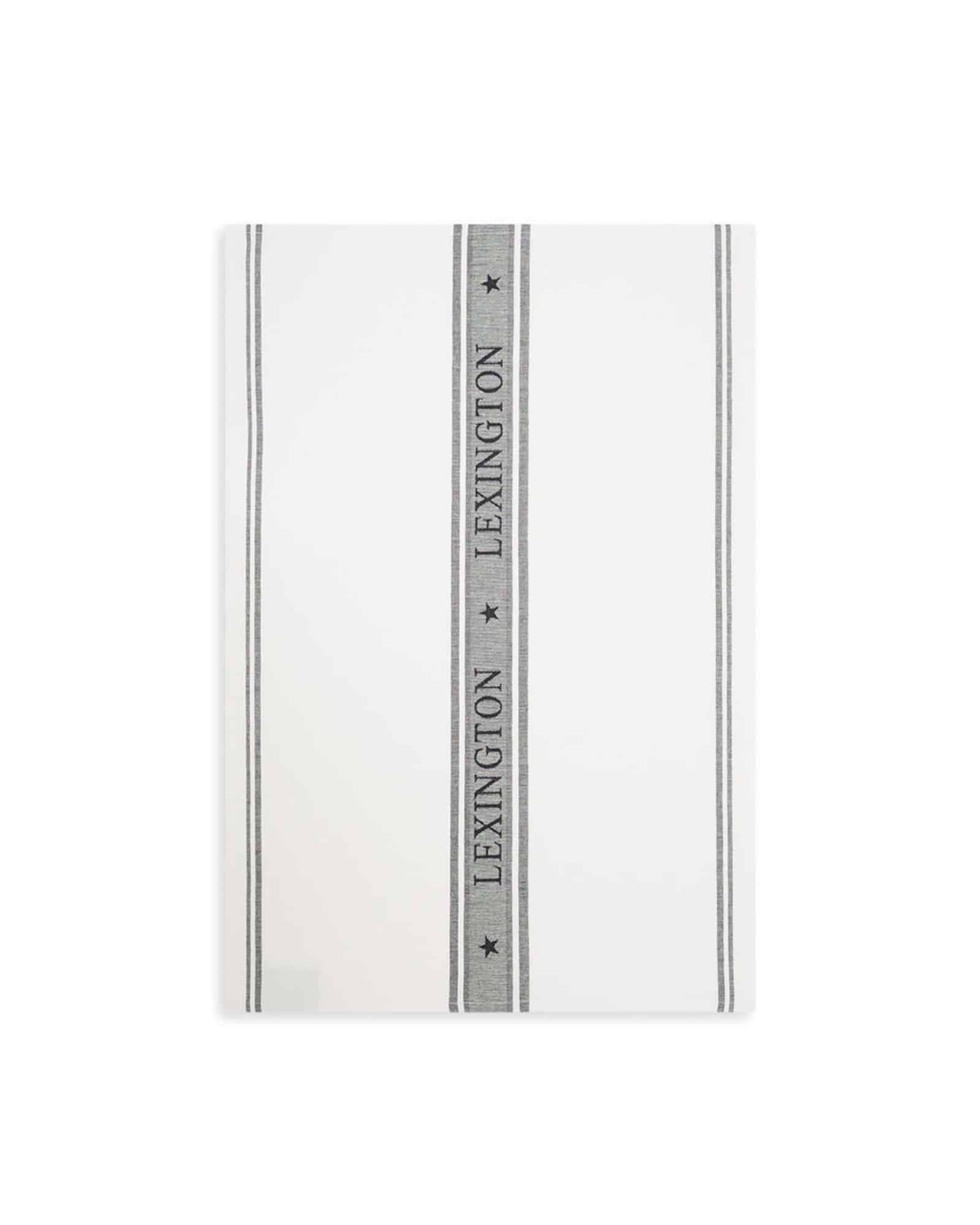 Stilren kökshandduk i 100 % ekologisk bomull med jacquardvävda ränder och Lexington-logga. Mjuk, slitstark och Oeko-Tex-certifierad – ett elegant och hållbart val för ditt kök.