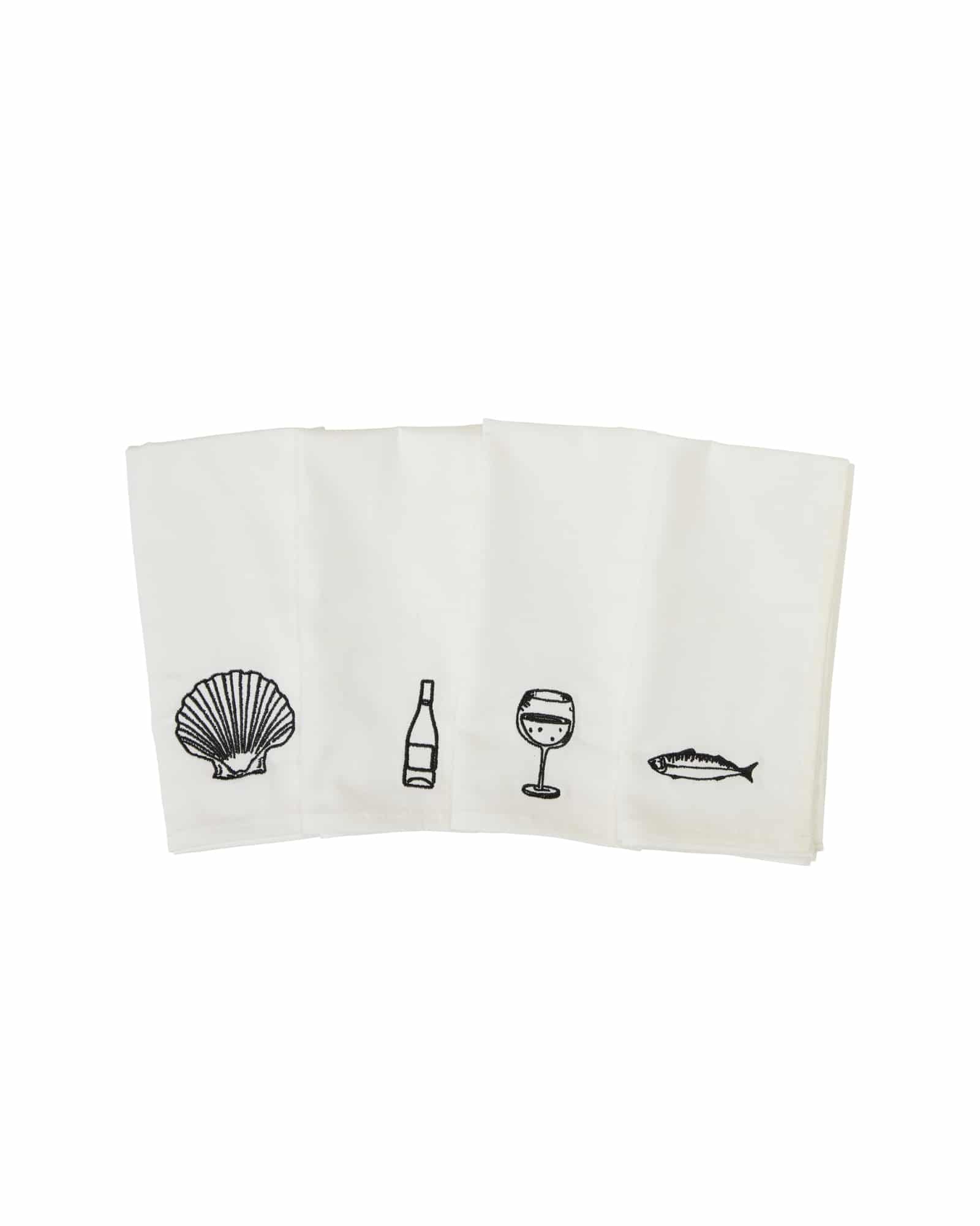 Servett Hav Mix. Servett Hav Mix Serie är en stilren och dekorativ textilservett inspirerad av havets former och uttryck. Med sina grafiska svartvita motiv skapar servetterna en modern men tidlös dukning som passar lika bra till vardag som till festligare tillfällen. Varje servett mäter 40 x 40 cm och finns i olika motiv som du kan välja vid beställning vilket ger dukningen ett levande och personligt uttryck.