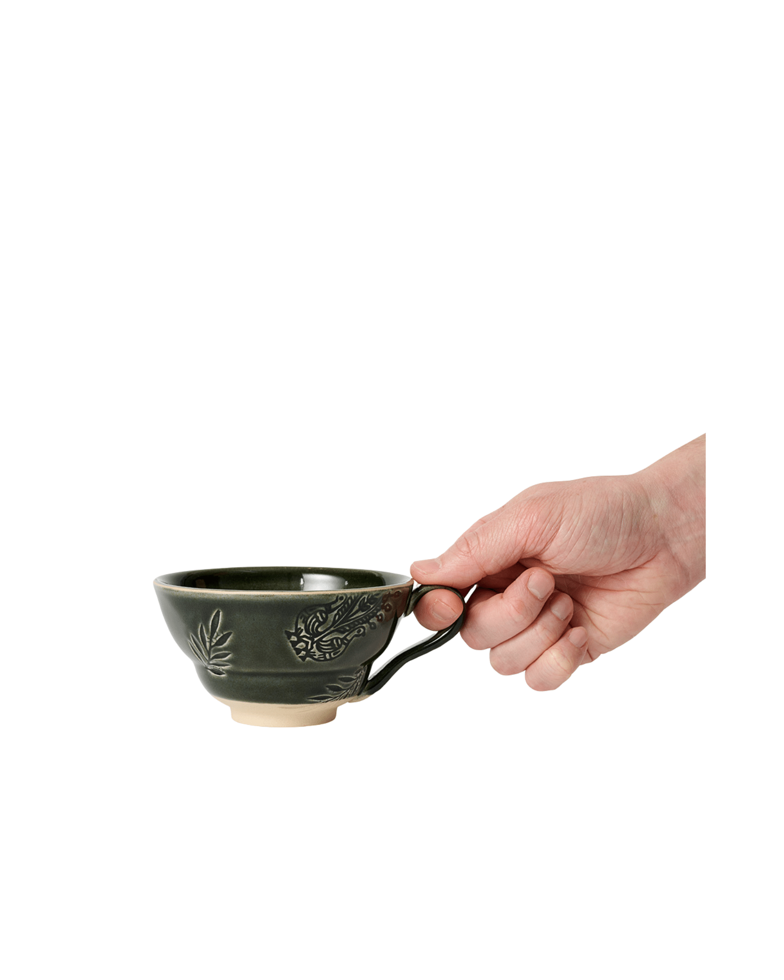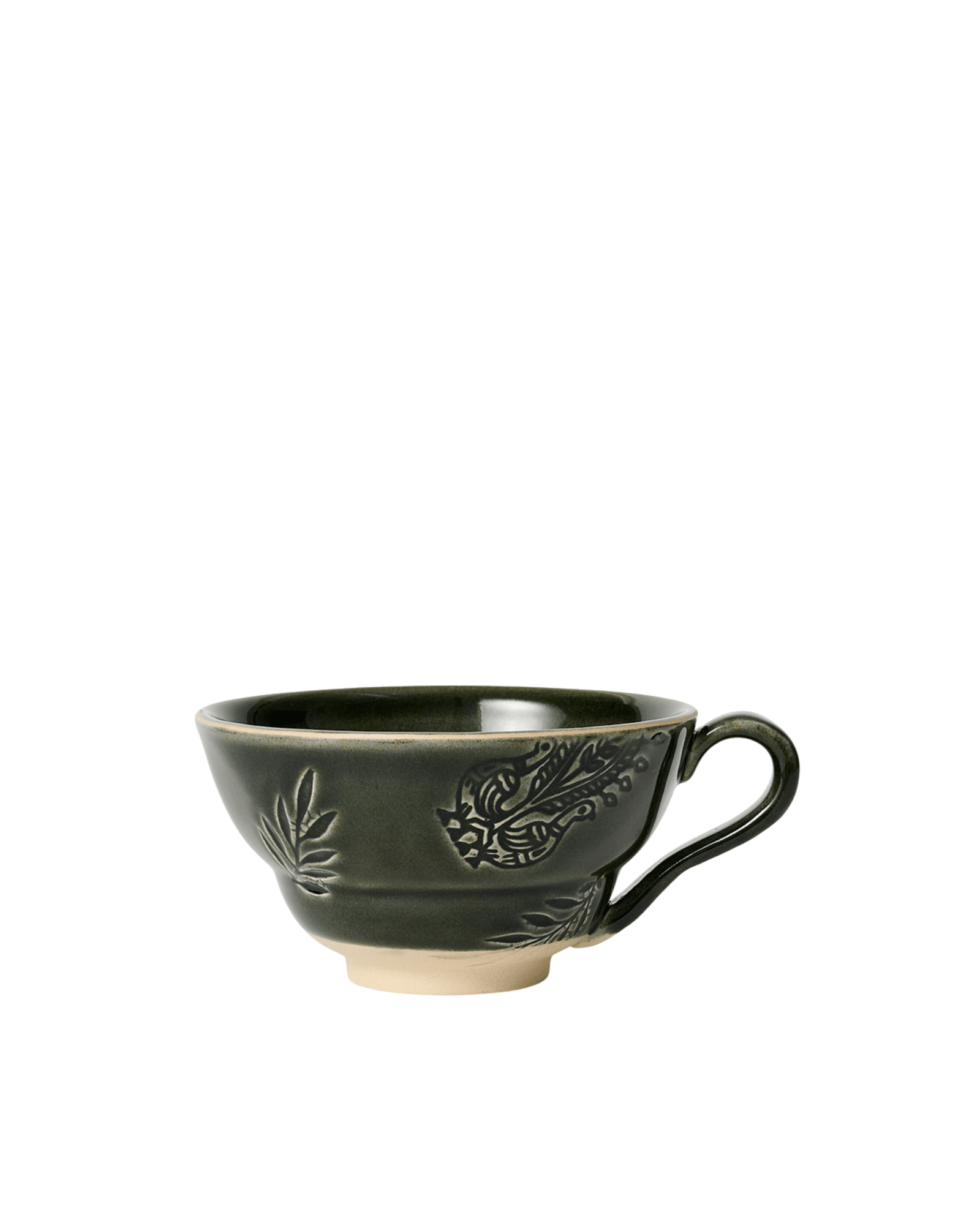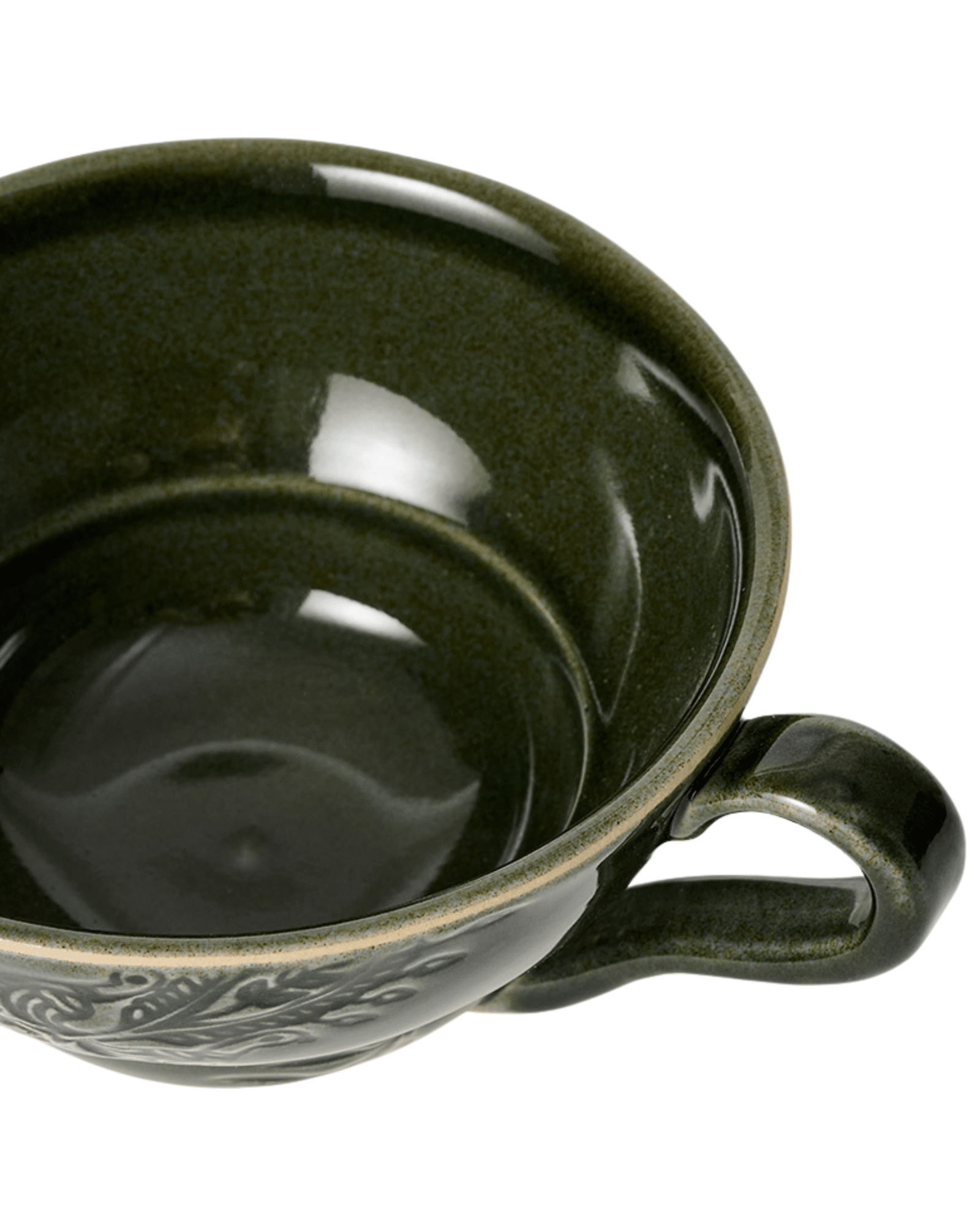 Den unika Shadow-glasyren ger ett levande uttryck med djupa nyanser och naturliga färgskiftningar. Därför får ytan ett fint djup med mjuk variation i tonen. Varje kopp blir därmed unik, vilket skapar en personlig känsla vid dukning. Samtidigt förstärker det diskreta mönstret från Arabesque-kollektionen helhetsintrycket och bidrar till en stilren känsla.