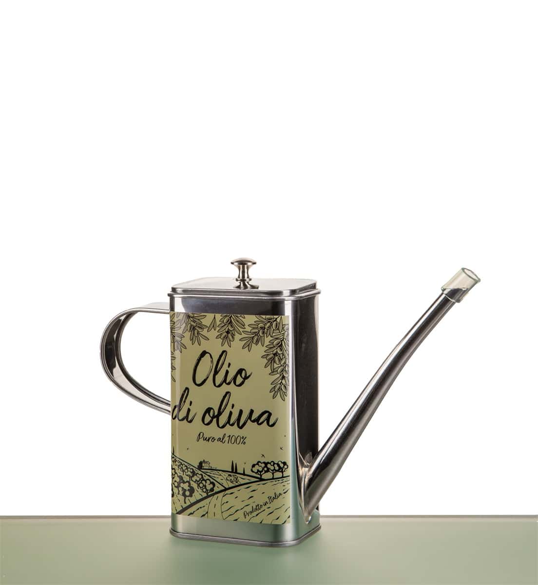 Snygg Italiensk olivoljekanna i plåt som rymmer 500 ml olivolja.