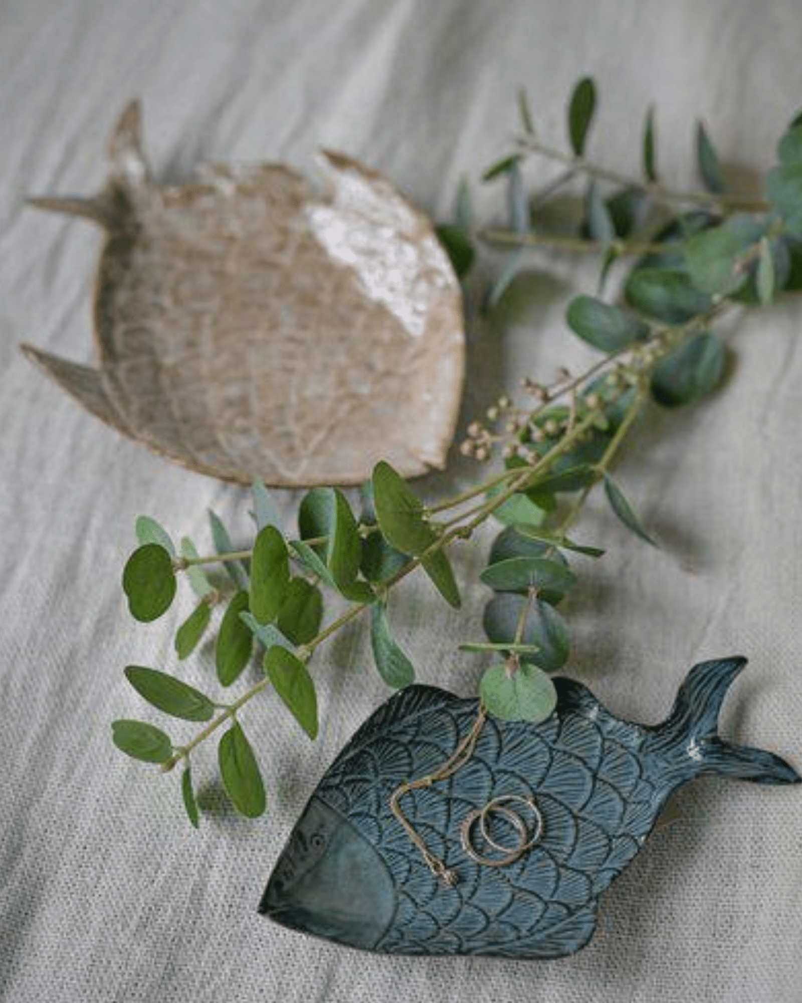 De mjuka beige tonerna kombinerade med friska blå nyanser skapar en balanserad helhet som lyfter hela bordet. Samtidigt gör färgvalet att fiskfaten enkelt samspelar med både neutrala och mer färgstarka serviser. Därför kan du skapa en dukning som känns genomtänkt, lekfull och samtidigt stilren.
