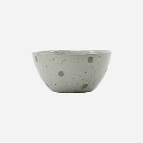 Skålen Dots är redo att lägga till en lite utda touch till ditt bordsarrangemang. Dess lekfulla mönster med gröna pricker är ett positivt tillskott till dina serviser och du kan förstärka dessa detaljer med tallrikarna och den mindre skålen i samma design. Använd stengodsskålen till frukost, sidorätter eller snacks vid informella tillfällen. Dot skapar en fin kontrast till mörka och minimalistiska föremål på middagsbordet. Om du går den eklektiska vägen kan du blanda prickarna med ränder och olika finish. Med sina nedtonade färger klistermärke Dots ut utan att vara extravagant.