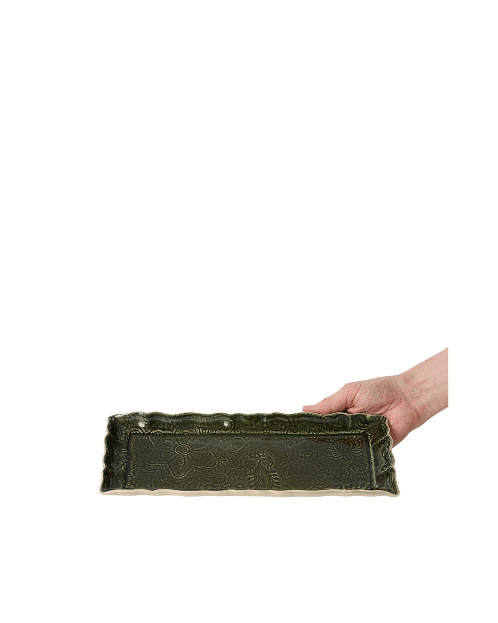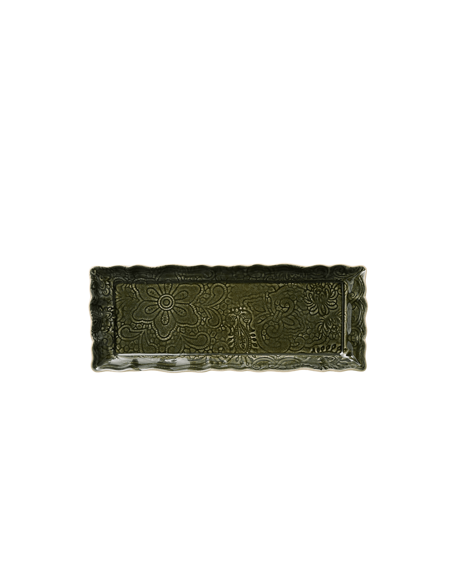 Den mörkt mossgröna glasyren i färgen shadow ger Sthål Tray Dish Shadow 33,5×13,5 cm en levande och unik karaktär. Samtidigt skapar den rinnande glasyren vackra variationer i ytan, vilket gör att varje Sthål Tray Dish Shadow 33,5×13,5 cm får sitt eget uttryck. Därför är ingen Sthål Tray Dish Shadow exakt lik den andra.