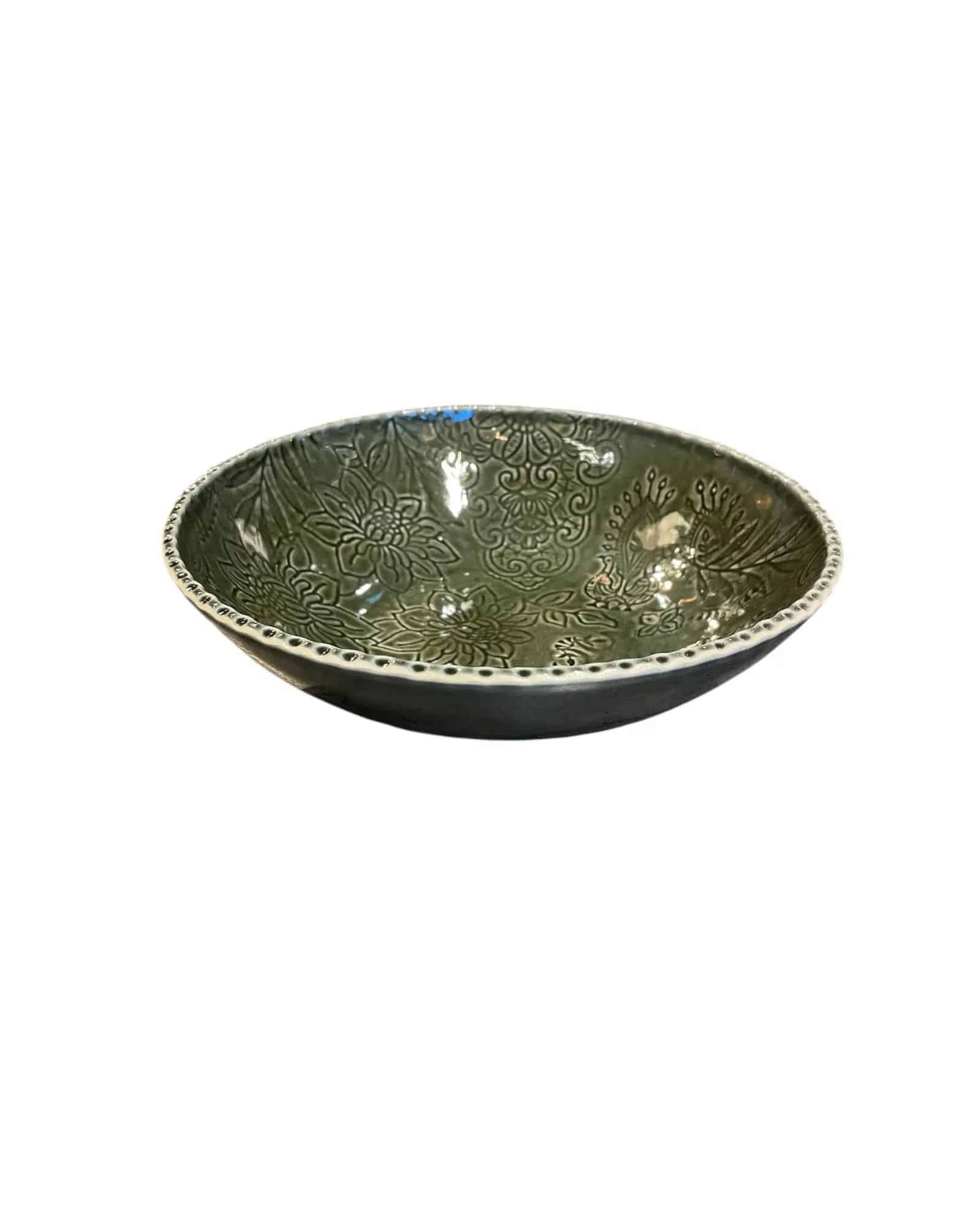 Tallriken är formgiven med det dekorativa Arabesque-mönstret på både insidan och utsidan, vilket ger ett konstnärligt och tidlöst uttryck. Mönstret matchar övriga delar i samma serie och skapar en harmonisk helhet när tallriken kombineras med annan Sthål-keramik. Den sofistikerade Shadow-glasyren skapar livfulla färgskiftningar med subtila dekorkrackeleringar, vilket gör varje exemplar unikt och dekorativt på bordet.