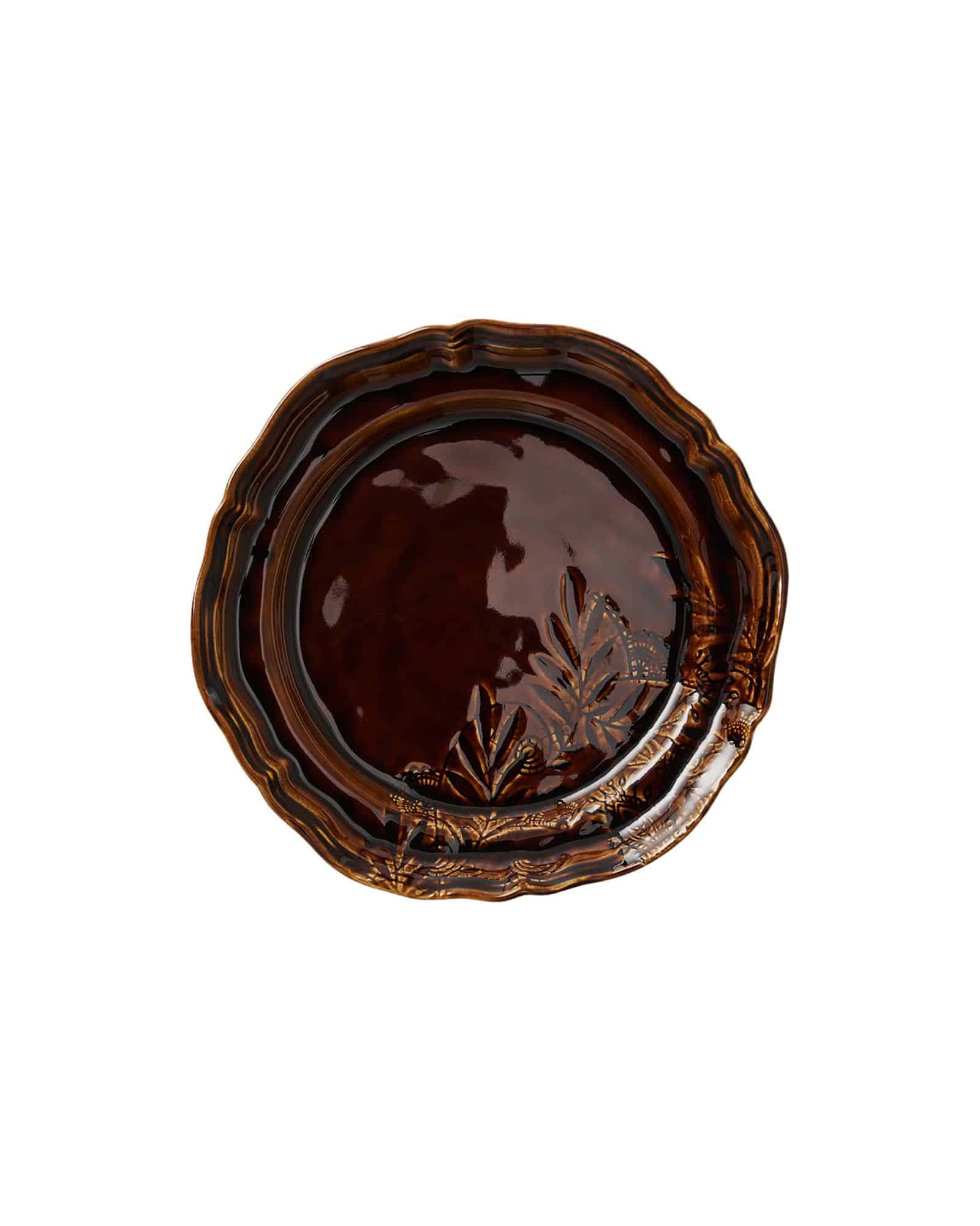 Tallrikens vågiga kant och orientaliska mönster är typiska för Sthåls populära kollektion Arabesque. Därför skapar den ett konstnärligt uttryck som harmonierar med andra delar i samma serie. Glasyren flödar över mönstret och ger subtila färgvariationer, vilket gör varje tallrik unik. Samtidigt kompletterar den varma kaffebruna tonen både ljusa och mörka serveringar, och passar lika bra för vardag som för fest.