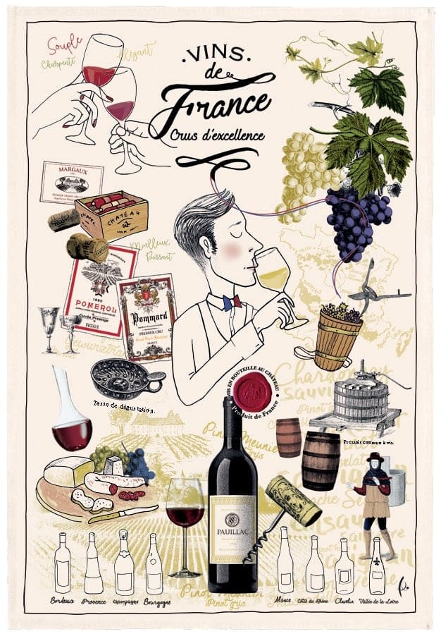 Kökshandduk med inspiration från Frankrikes viner, blir en snygg detalj i köket!
