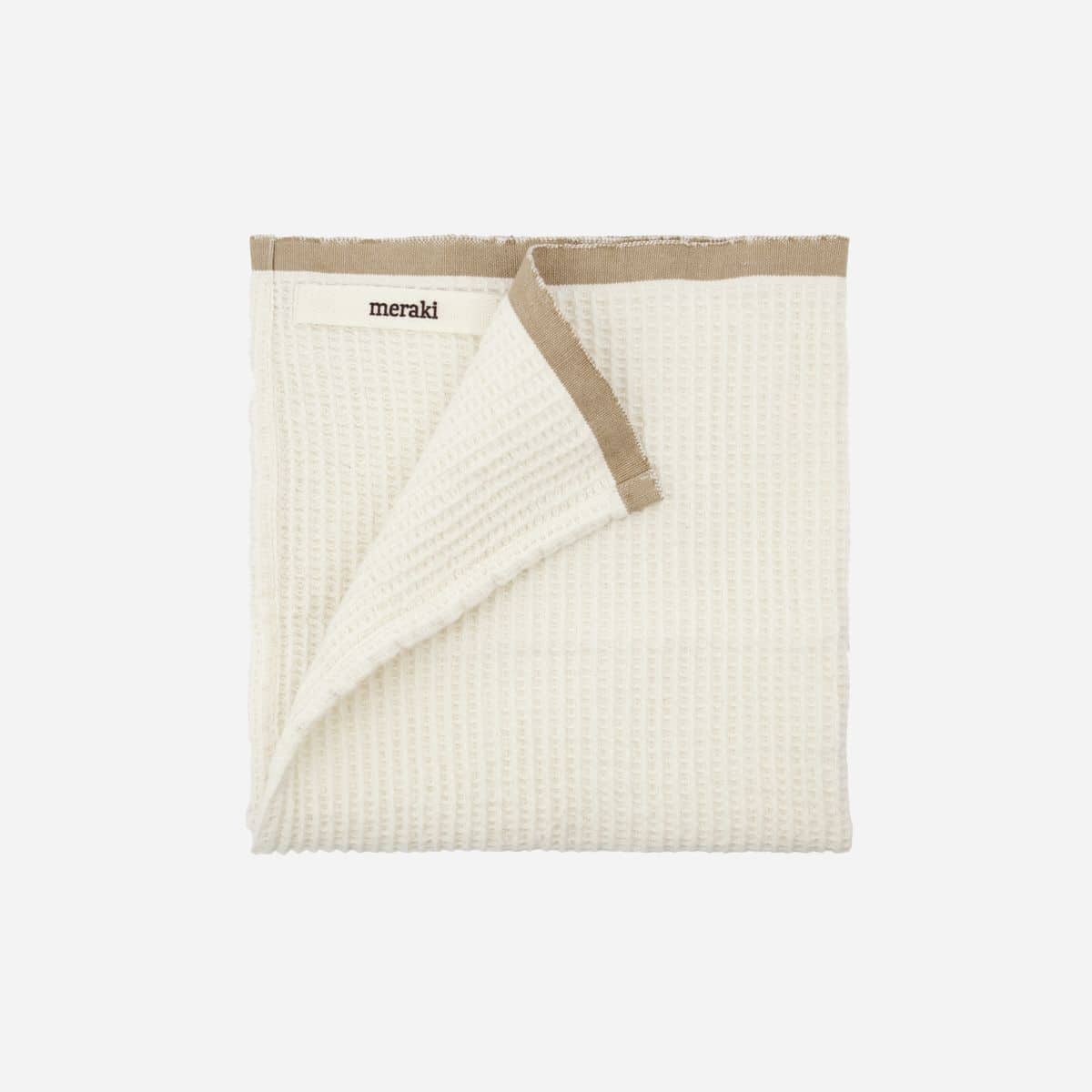 En uppsättning med två kökshanddukar med en uppgraderad design. Bare från Meraki är praktiska tack vare den absorberande och mjuka bomullen och samtidigt snygga tack vare den räfflade stilen och den sandfärgade kanten. Häng dem på en krok nära diskbänken och använd dem för att torka händerna, rensa upp spill och torka köksbänken. Komplettera den naturliga och jordnära atmosfären i ditt kök med disktrasor från Bare i samma färg. Trots att det är en vardagsartikel är kökshandukarna viktiga när du försöker skapa en sammanhängande känsla i ditt kök.