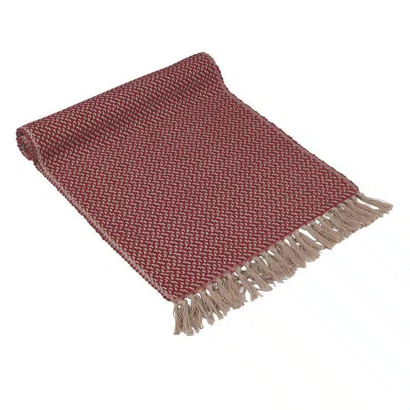 En stilren bordslöpare i 100% bomull med dekorativa fransar. Färgerna är mjuka och naturnära, med en palett som påminner om ljuva nyanser inspirerade av naturen.