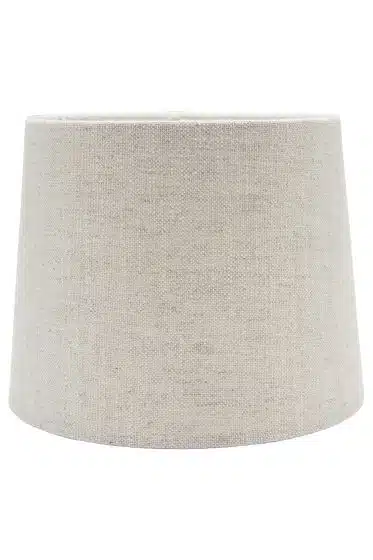 Lampskärm Sofia i ett tyg med linnestruktur och matt yta. Skärmen finns i flera storlekar, har en ljus insida som ger ett behagligt sken och är lätt att matcha med olika lampfötter. Lampskärmen har ett E27 ringfäste.