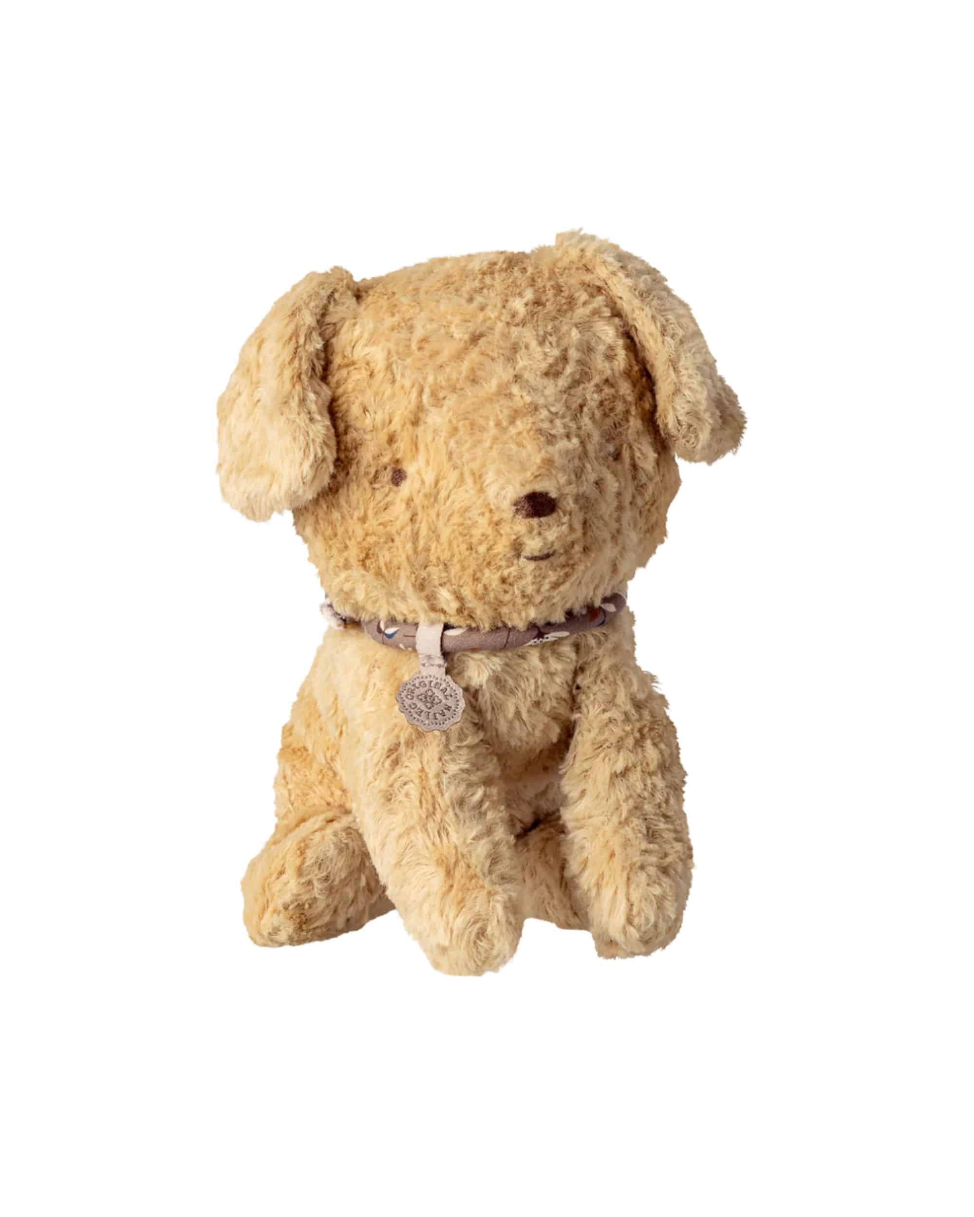 Maileg Valp liten mjuk sand. Maileg liten valp i sandfärg är en charmig följeslagare som sprider glädje och fantasi för alla åldrar. Hon är tillverkad av mjuka och exklusiva material som bomull och viskos, vilket ger valpen en härlig känsla och en vacker vintage-look.