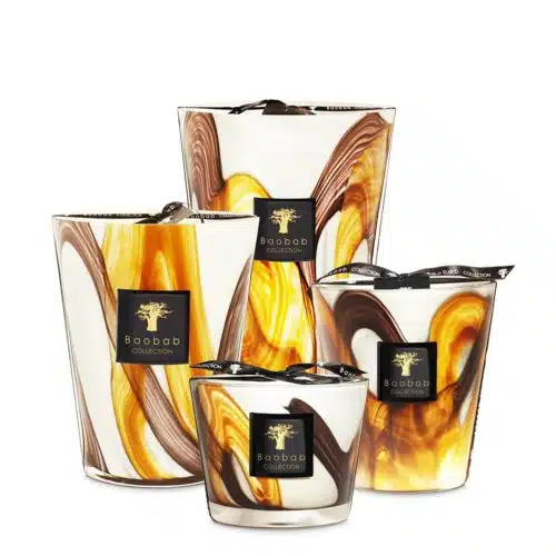 Nirvana Spirit doftljus presenterar en utmaning som krävde våra glashantverkares fingerfärdighet för att skapa integrerade färgskott i solbränna och kumminfärger. Cedar – Incense – Vanilla