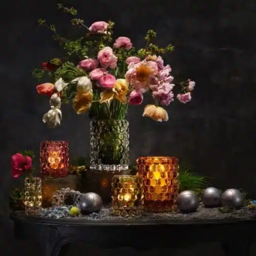 Hurricane Boule Misty Blue är 12 cm hög och är 10 cm i diameter. Vikt ca 1000-1300 gr. Kom ihåg att varje ljuslykta är unik, så avvikelser på +/- 3% är en del hantverket och charmen i vår design. Bubblorna tillkommer när man blåser glasmassan i en gjutjärnsform och formas sedan för hand. Ytan är fylld med optiska bubblor som gör att Hurricane Boule får ett skimrande ljus i stilmässigt släktskap med 1970 talets glasdesign. Tål ej maskindisk. Vi ett rekommenderar 35 mm i diameter litet värmeljus i paraffin eller stearin.