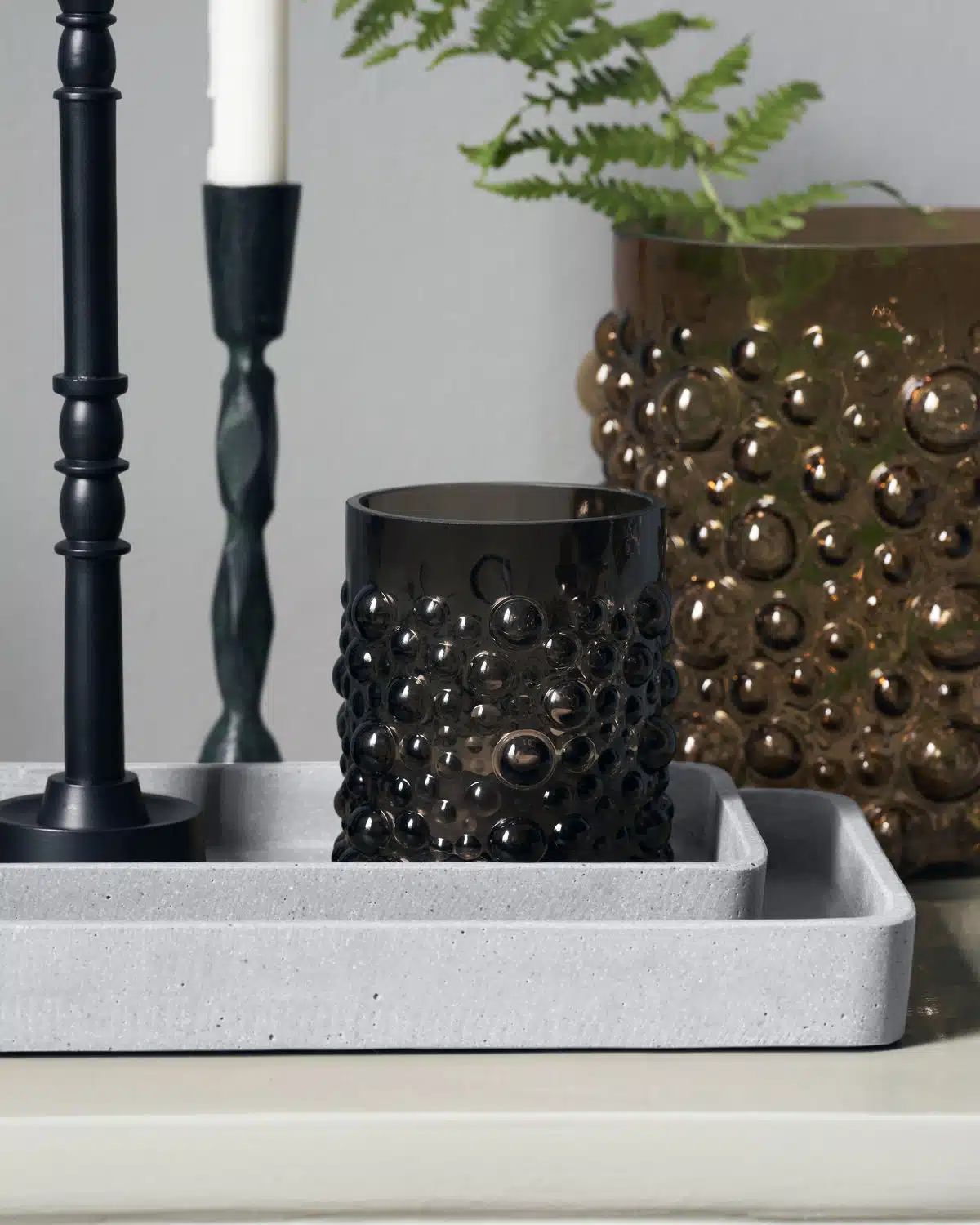 Skapa en inbjudande atmosfär med värmeljushållare i varma, avkopplande färger. Foam från House Doctor kommer i en mörkbrun färg och med en bubbelformad yta som ger subtila detaljer till din heminredning. Den passar fint in i en dekor med stilrena värmeljushållare och ljusstakar i liknande färger. Om du vill göra Foams bubbelformade yta till höjdpunkten pi din dekor kan du blanda värmeljushållaren med glasvaserna i samma design och placera dem tillsammans eller runtomkring i ditt vardagsrum för ett sammanhållet utseende.