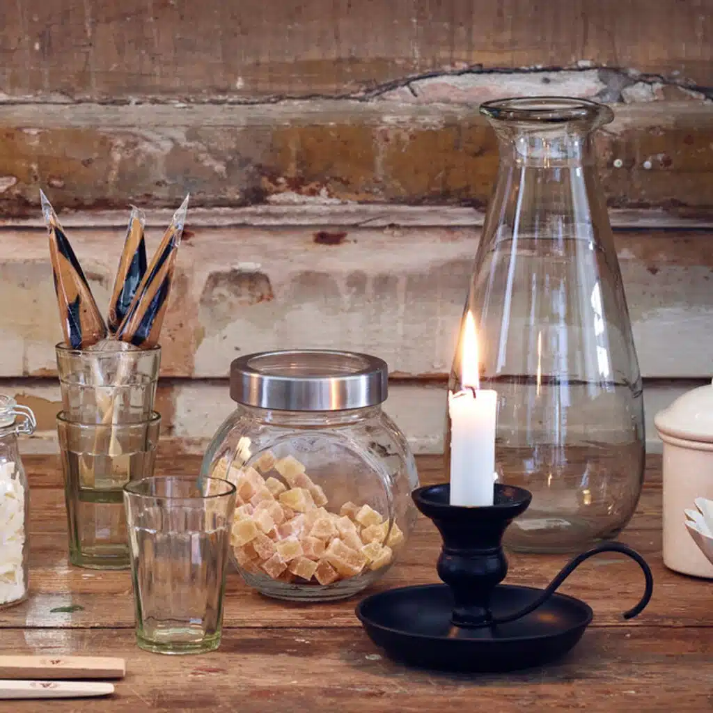 Svart ljusstake med elegant handtag i gammaldags design. Passar för ett kronljus.