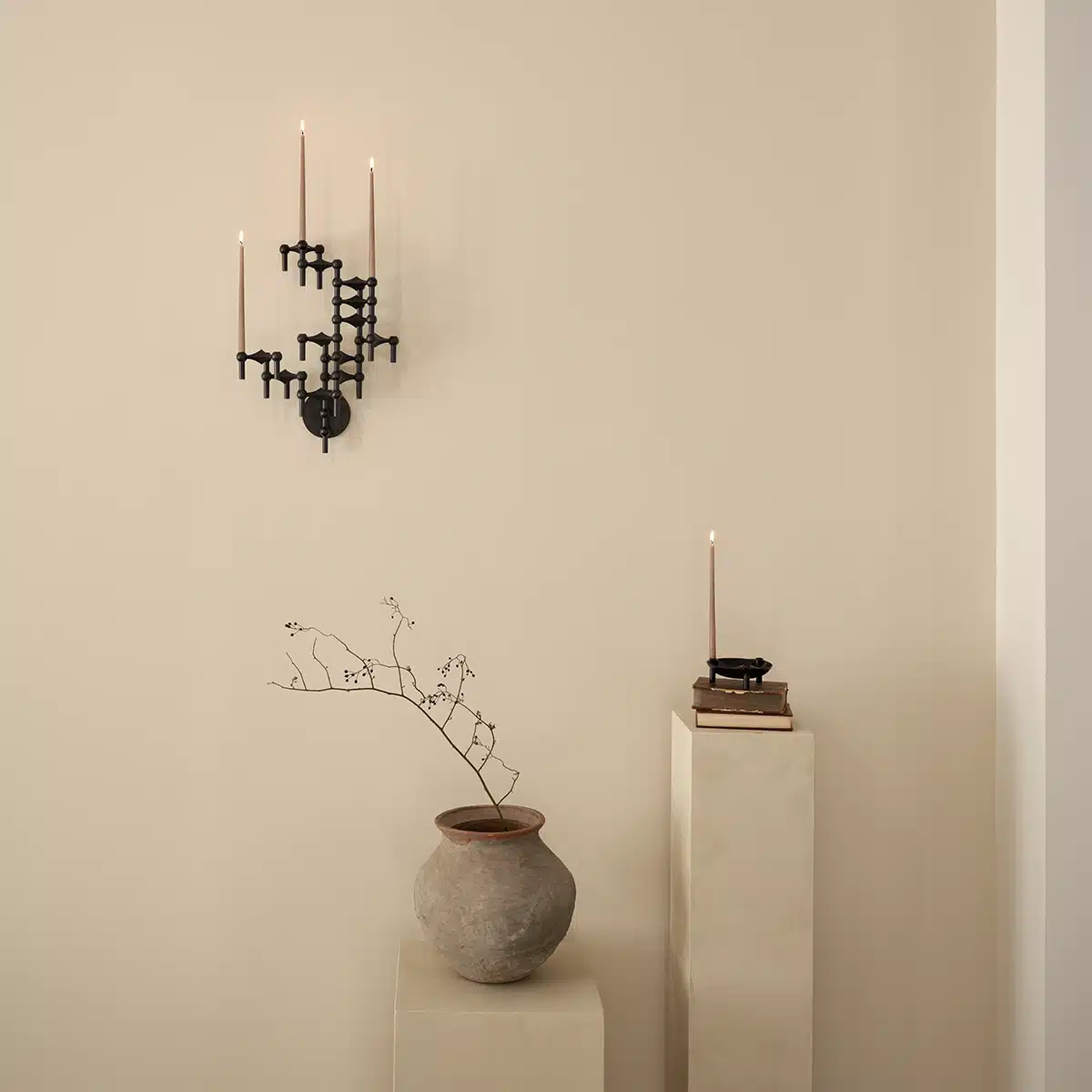 Vägghängaren är omsorgsfullt utvecklad för att utöka ljusstakens visuella möjligheter. Vägghängaren är inspirerad av den ikoniska STOFF Nagel-designen och gör det möjligt att skapa unika skulpturer från vertikala ytor med oändliga bitar av ljusstake, skål och vas. Vägghängaren är diskret och diskret och uppmuntrar till att utforska enskilda sätt att ställa ut din STOFF Nagel-kollektion.