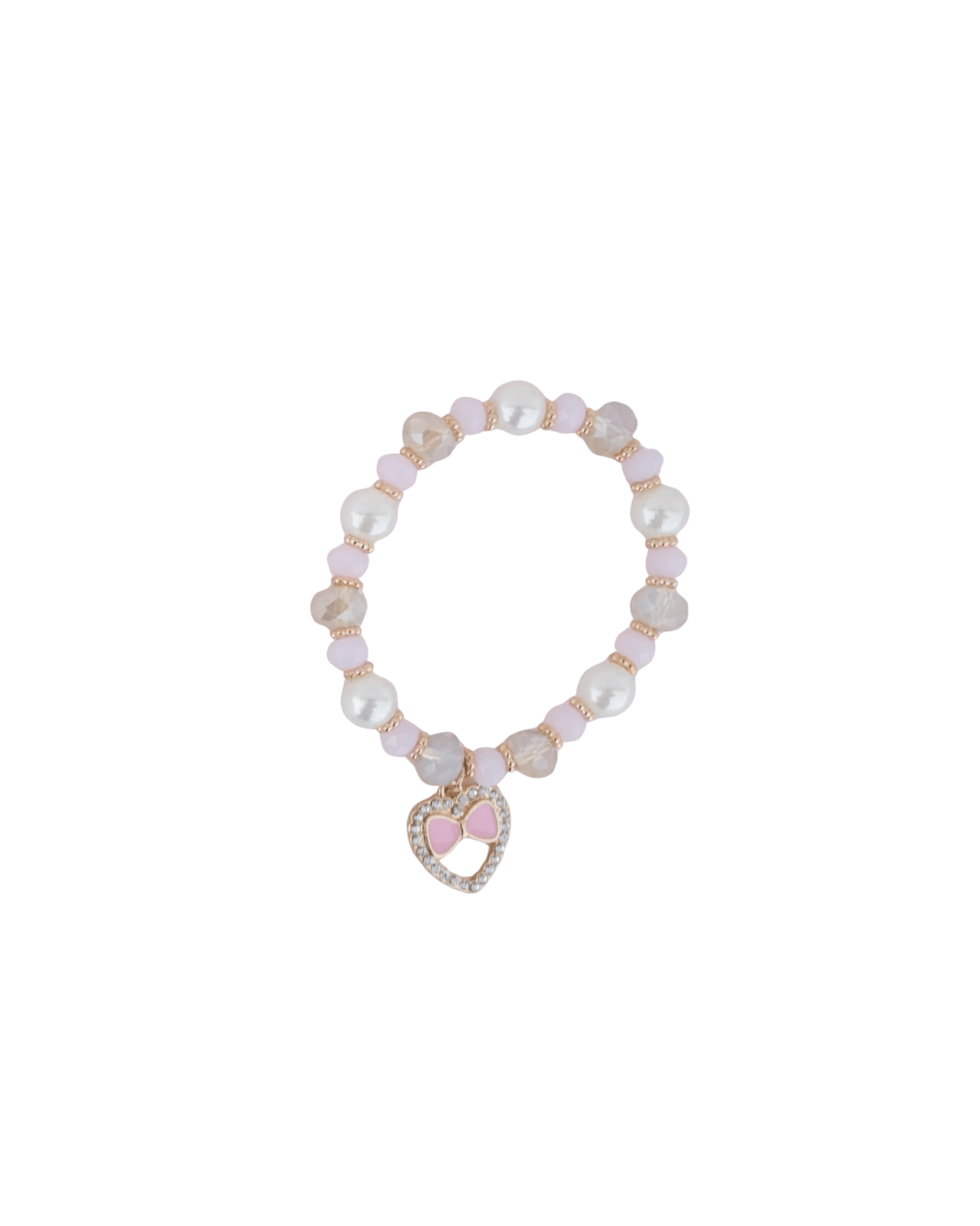 Boutique Love Bracelet armband i rosa, vitt och guld med rhinestone-detaljer och hjärtcharm. Perfekt för en söt och elegant stil.