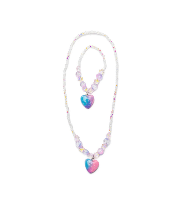 Galaxy Heart Halsband & Armband Set är ett charmigt smyckesset för barn som älskar glittrande och lekfulla accessoarer. Setet innehåller ett halsband och ett matchande armband med ett fint hjärtmotiv i galaxinspirerad design. De skimrande färgerna skapar en magisk känsla och gör smyckena till en perfekt detalj för både vardag och lek.
