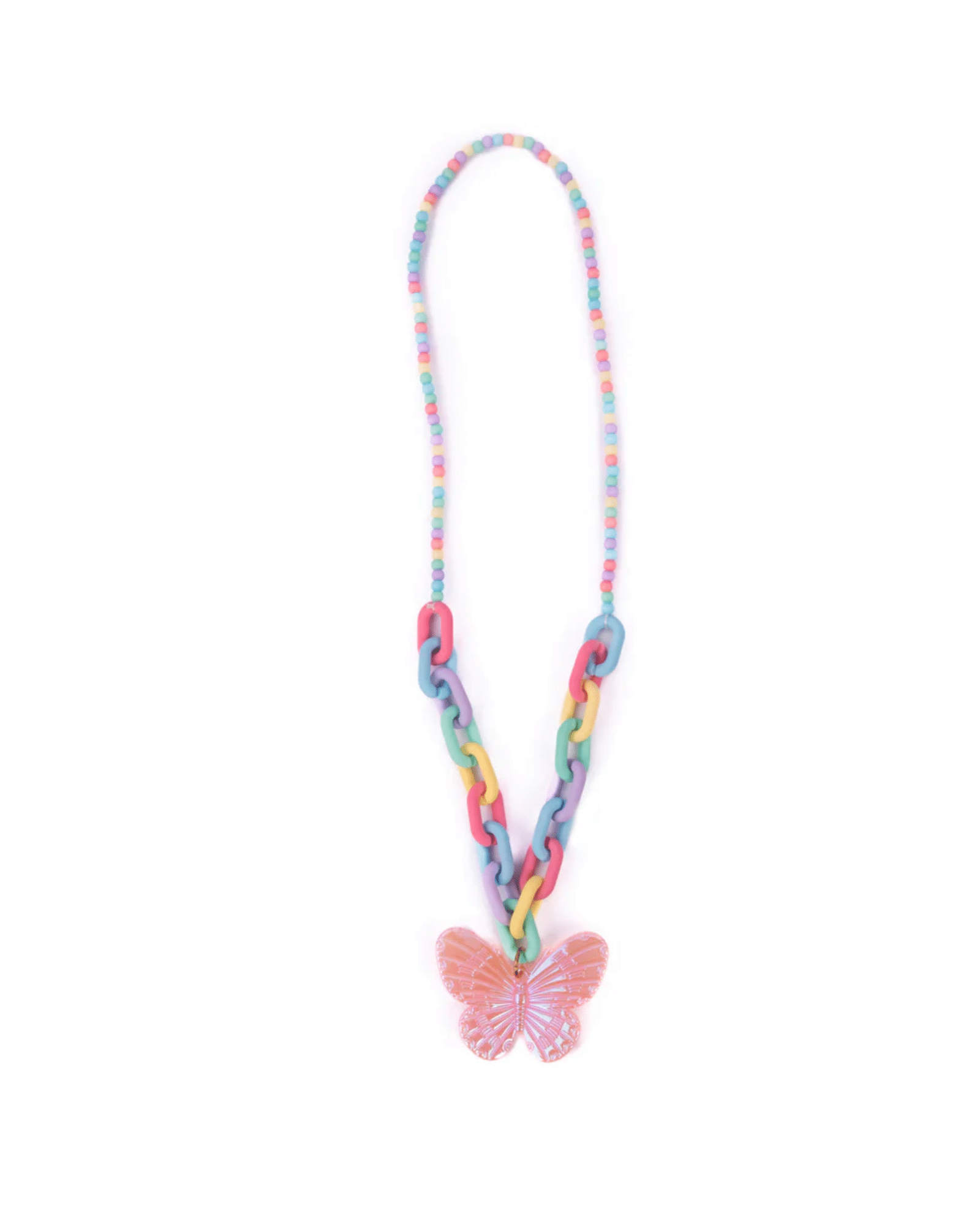 Först och främst erbjuder detta halsband en unik upplevelse där smycke möter lek på ett fantasifullt sätt. Dessutom pryder en vacker fjäril hänget och skapar ett charmigt uttryck som direkt fångar blicken. Samtidigt gömmer sig ett litet kalejdoskop i designen, vilket gör att barnet inte bara bär ett halsband – utan också upptäcker en värld av färger och mönster.