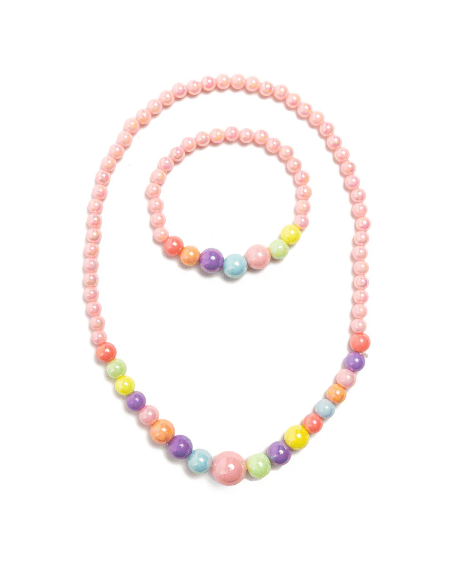 Å ena sidan fungerar pastellpärlsmyckesetet som en charmig detalj under lek och utklädnad, men å andra sidan fungerar det lika bra som en färgglad och elegant accessoar i vardagen. Därför kan barnet bära halsbandet och armbandet hemma, i skolan eller vid festliga tillfällen. Samtidigt uppmuntrar setet till kreativitet och självuttryck, vilket gör smyckena till mer än bara dekorativa detaljer – de blir en del av barnets fantasi och stil.
