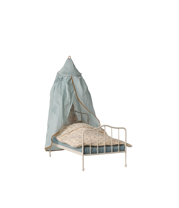 Maileg sänghimmel miniatyr mint ger varje liten säng ett romantiskt och drömlikt uttryck. Den mjuka mintgröna färgen skapar en lugn atmosfär och ger lekvärlden ett harmoniskt helhetsintryck. Dessutom matchar den enkelt med Mailegs miniatyrmöbler och figurer, vilket gör det lätt att bygga upp en enhetlig och inspirerande miljö.