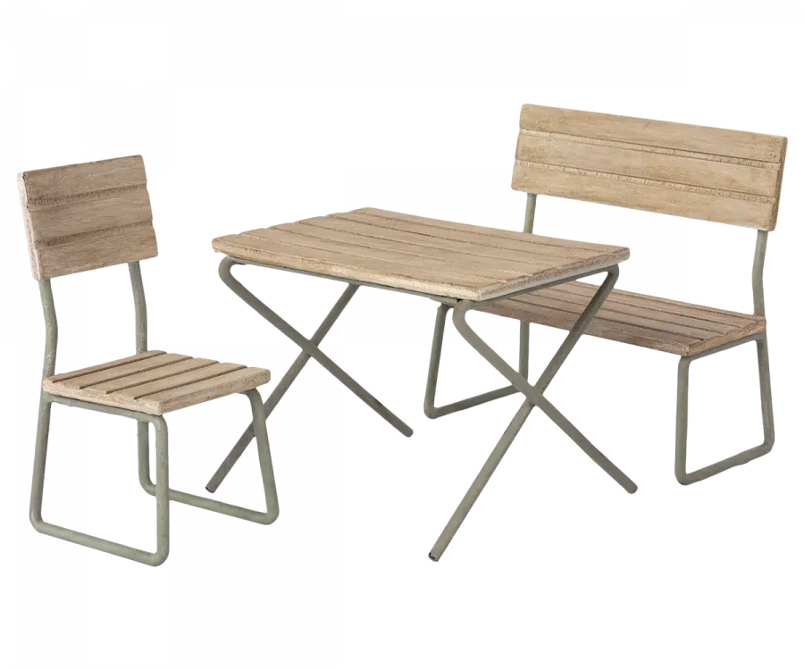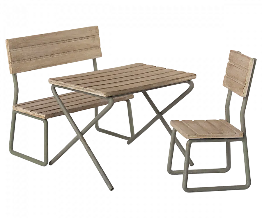 Glöm inte uterummet – detta trädgårdsset är perfekt för alla sommarträffar. Den har en vintage-look och passar alla kaniner och kaniner i storlek 1 och 2 och familjen Teddy. Basen är gjord av metall och toppen är i trä.