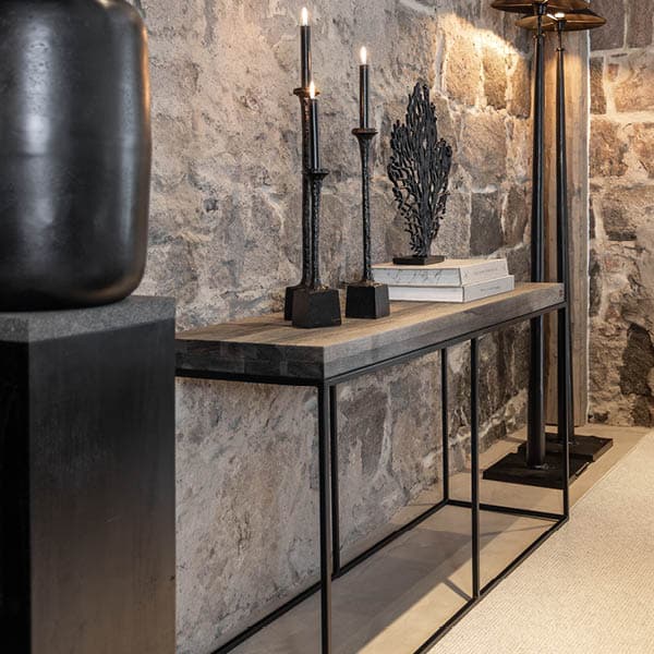 Artwood CARLISLE Konsolbord – tidlöst och stilrent konsolbord i massiv ek med metallunderrede. Perfekt som avlastningsbord i hall, vardagsrum eller kontor.
