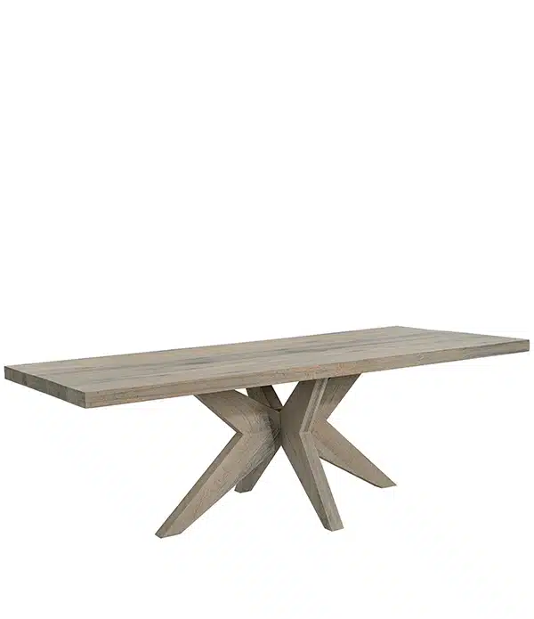 Upplev den perfekta kombinationen av stil och funktion med Justin Matbord. Detta stora och rymliga bord är tillverkat i robust ek och erbjuder gott om plats för familjemåltider, fester och samlingar med vänner. De korsande benen ger inte bara en modern och elegant estetik, utan skapar även extra utrymme under bordet för att du ska kunna njuta av dina måltider utan hinder.