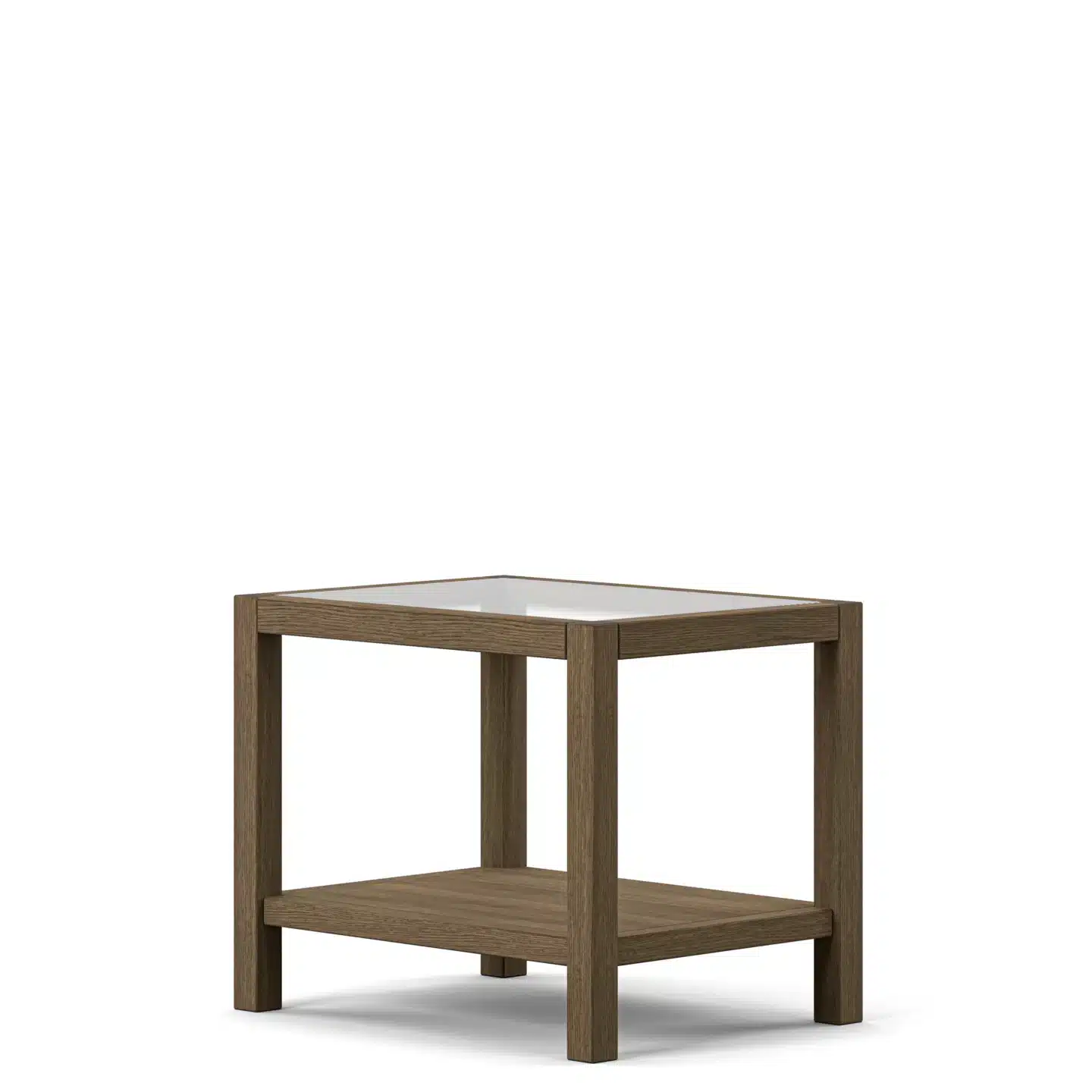 Lampbordet har en elegant glasbordsskiva, vilket ger en luftig och lätt känsla. Samtidigt erbjuder ett praktiskt hyllplan i träfanér extra plats för böcker, tidningar eller dekorationer. Kombinationen av glas och träfanér gör bordet både funktionellt och estetiskt tilltalande. Serien finns med benställningar i den populära färgen Burned Walnut, vilket tillför värme och naturlig elegans till ditt hem.