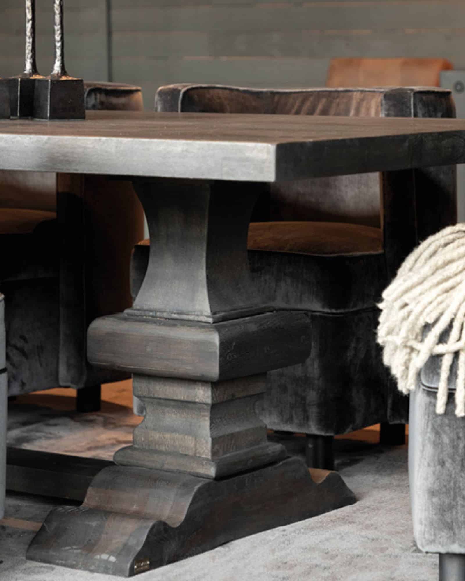 Paris är ett exklusivt matbord i helt massiv rustik ek, skapat för att förena klassisk formgivning med lång livslängd. Det vackert formade underredet ger både stabilitet och ett karaktärsfullt uttryck som gör bordet till en naturlig mittpunkt i matsalen.