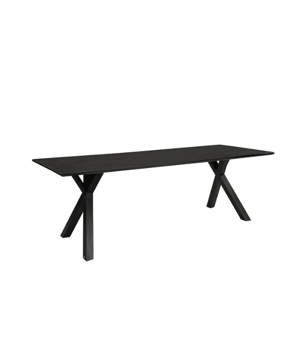 Den massiva ekskivan ger bordet en gedigen och exklusiv känsla. Dessutom har varje bord naturliga variationer i träet, vilket gör varje exemplar unikt. Den svarta finishen framhäver träets struktur och skapar ett elegant uttryck. Samtidigt gör färgen att bordet enkelt kan kombineras med olika inredningsstilar.
