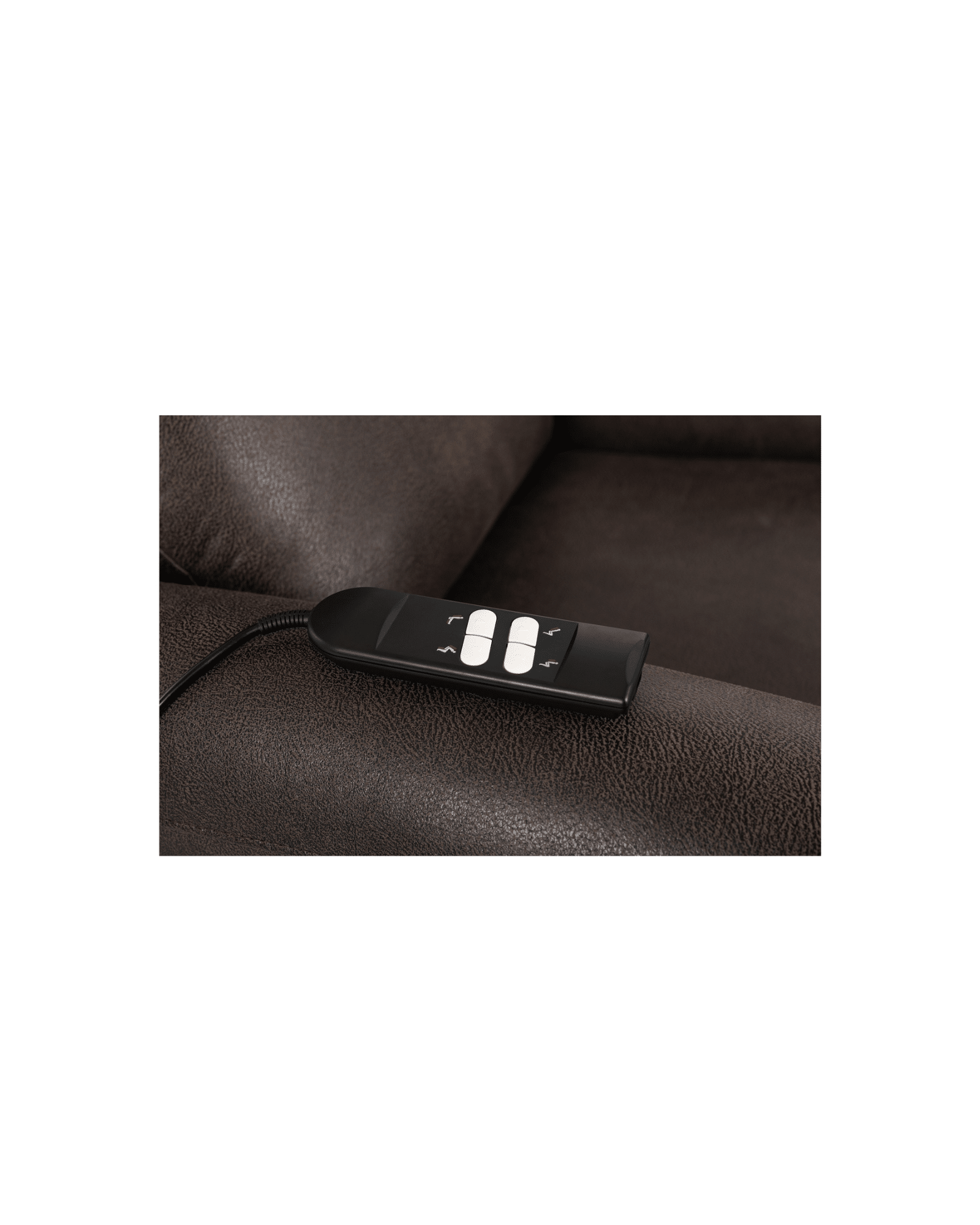 Bekväm reclinerfåtölj med liftfunktion och 2 motorer i brun polyester. Ger hög komfort och underlättar att resa sig.